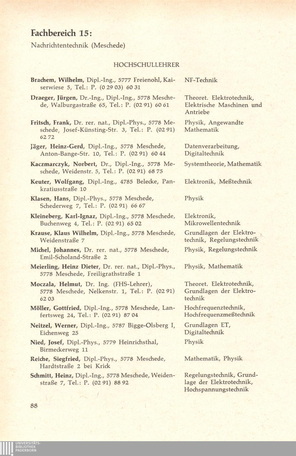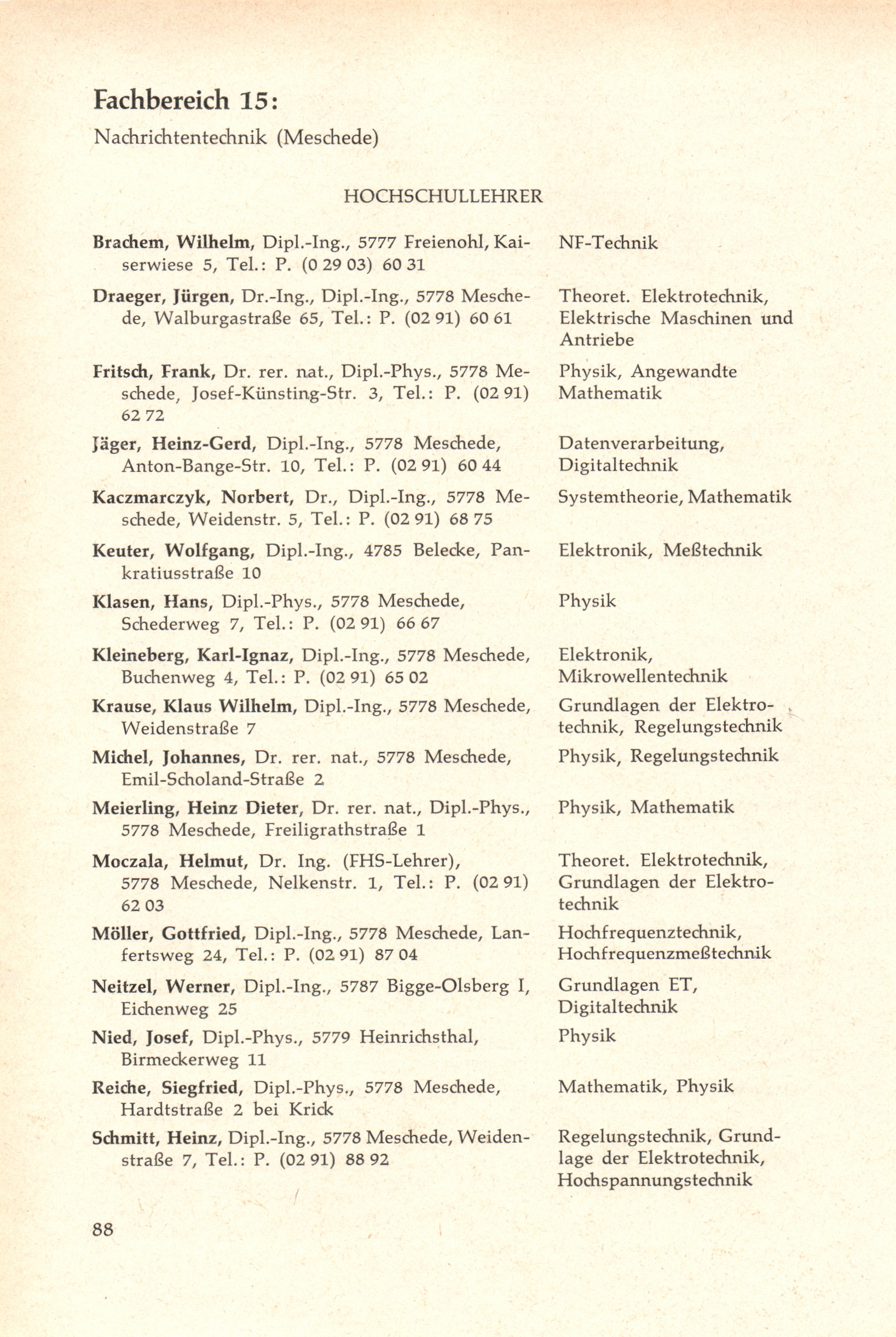 Personal- und Vorlesungsverzeichnis für die Gesamthochschule Paderborn
