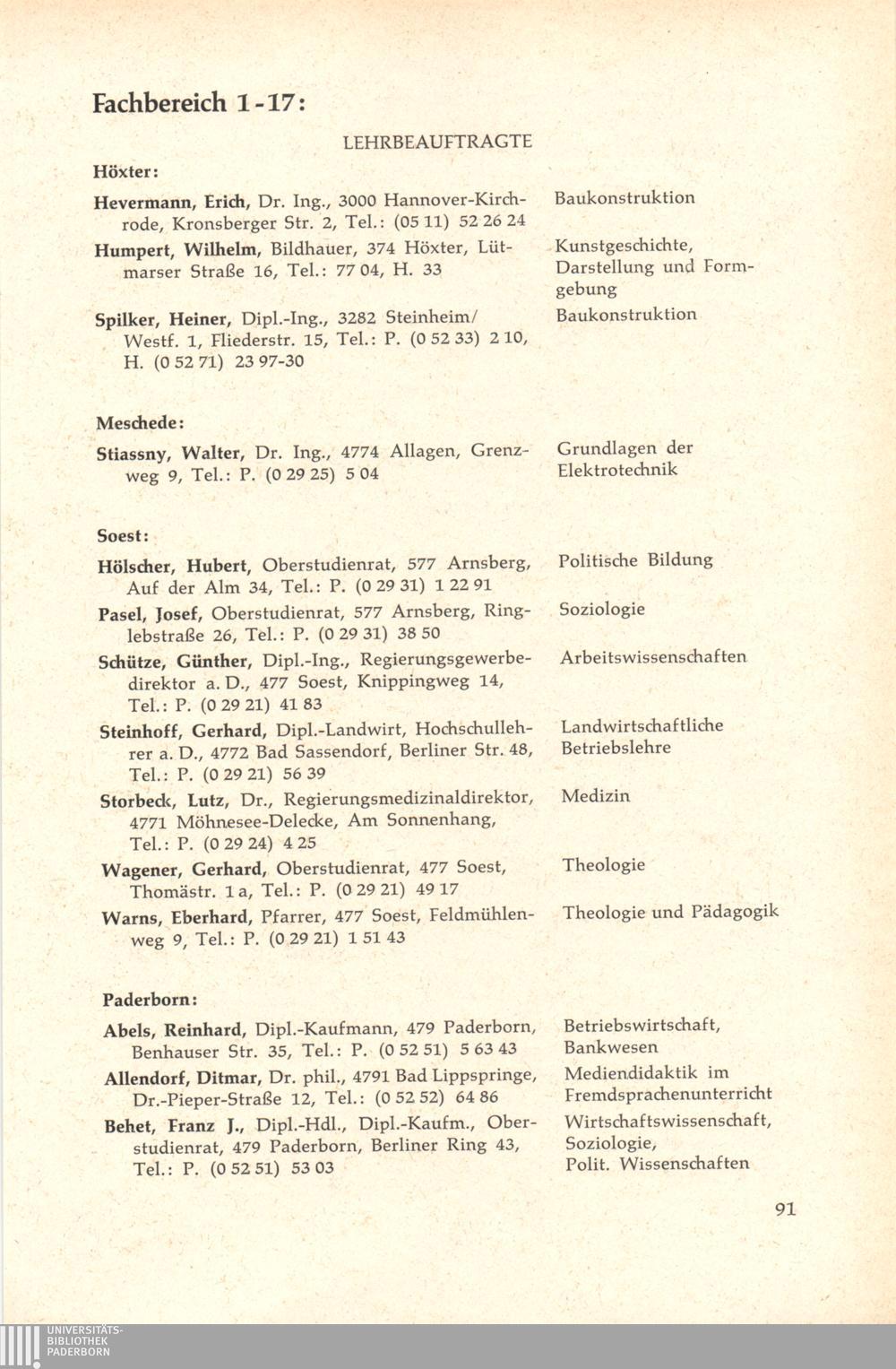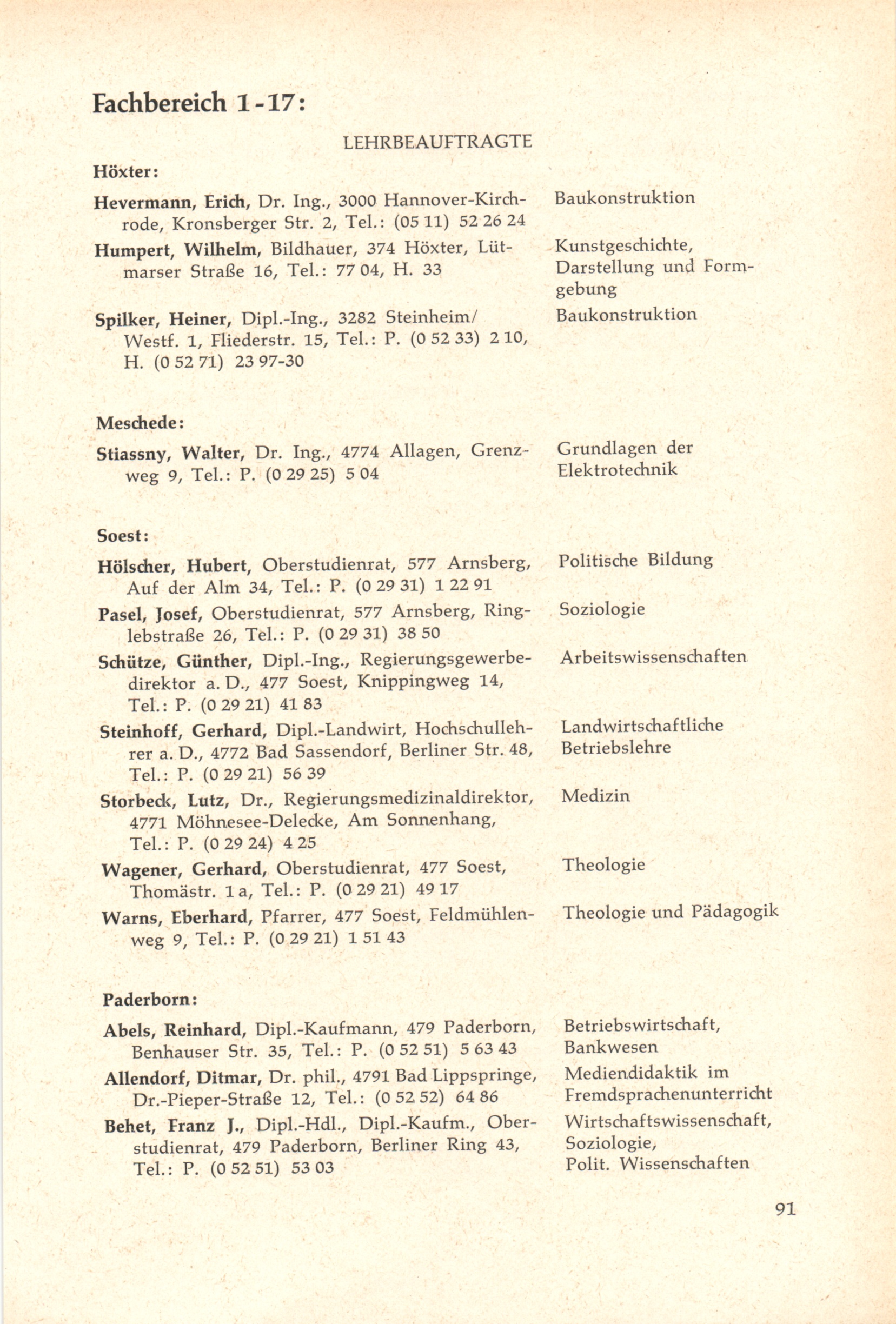 Personal- und Vorlesungsverzeichnis für die Gesamthochschule Paderborn