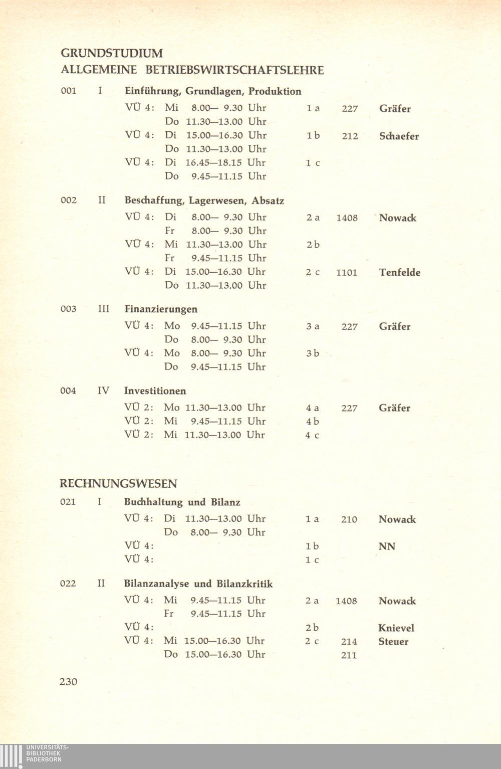 Personal- und Vorlesungsverzeichnis für die Gesamthochschule Paderborn