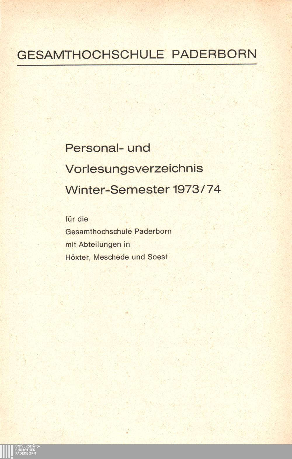 Personal- und Vorlesungsverzeichnis für die Gesamthochschule Paderborn