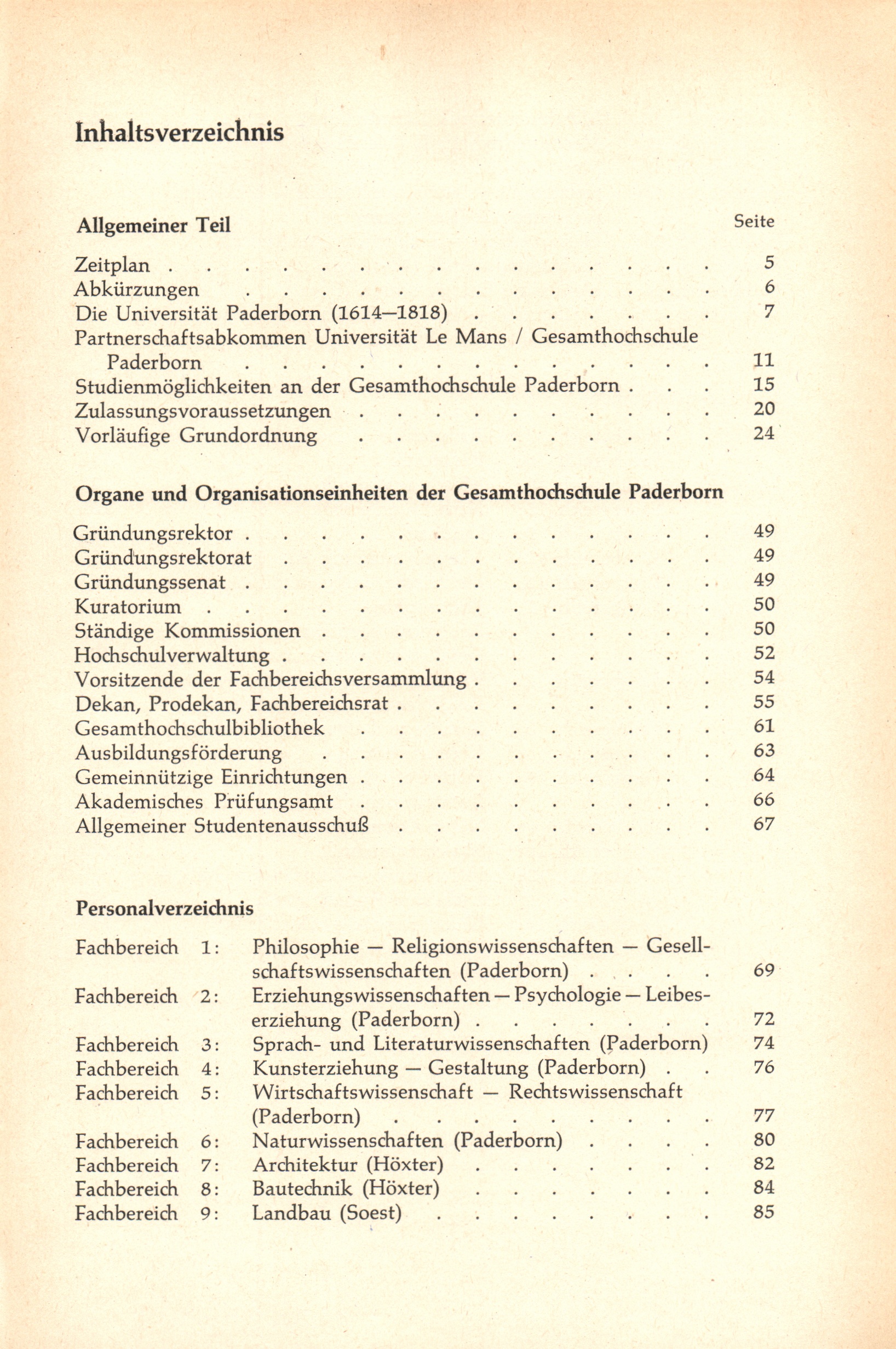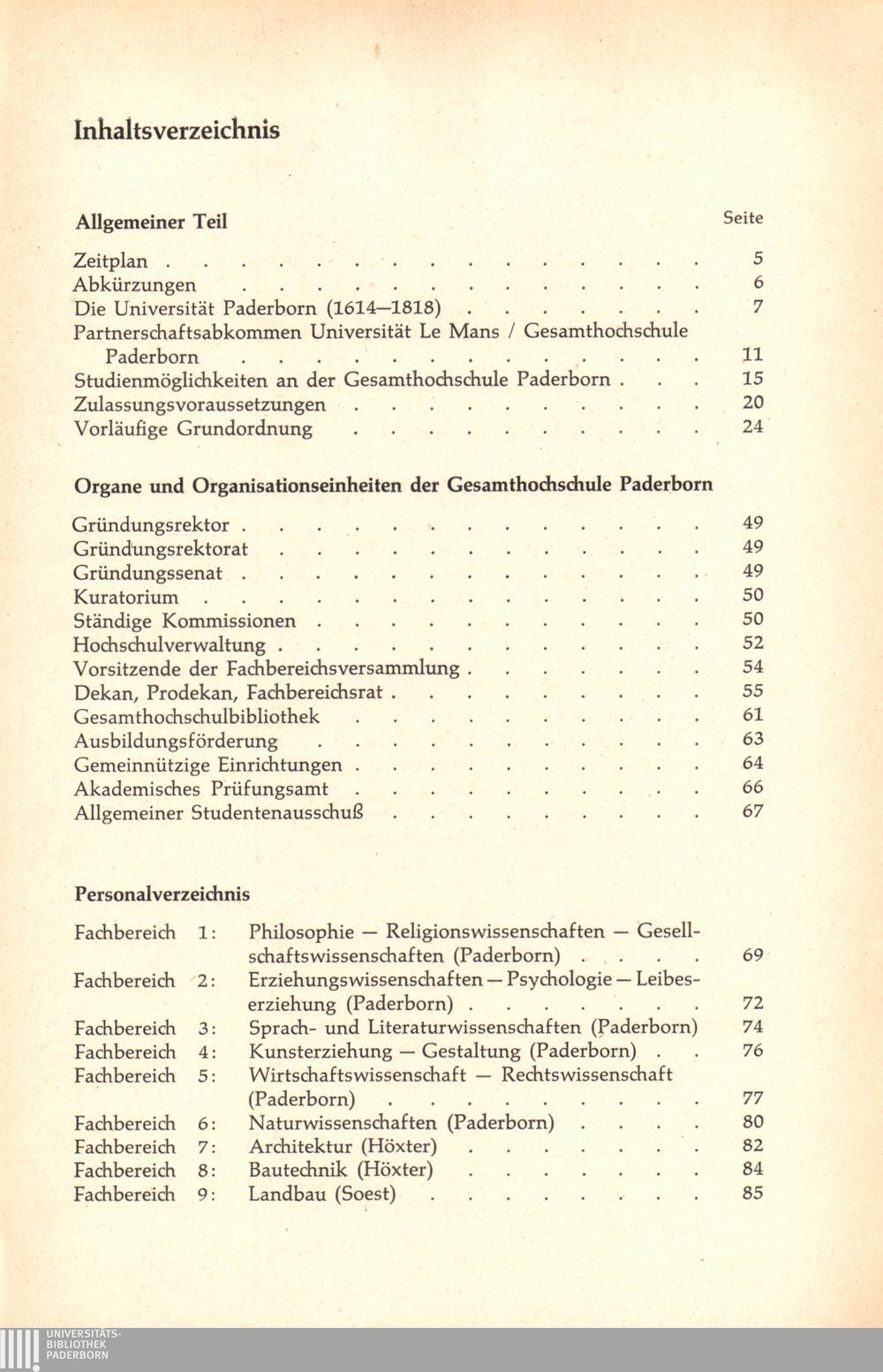Personal- und Vorlesungsverzeichnis für die Gesamthochschule Paderborn