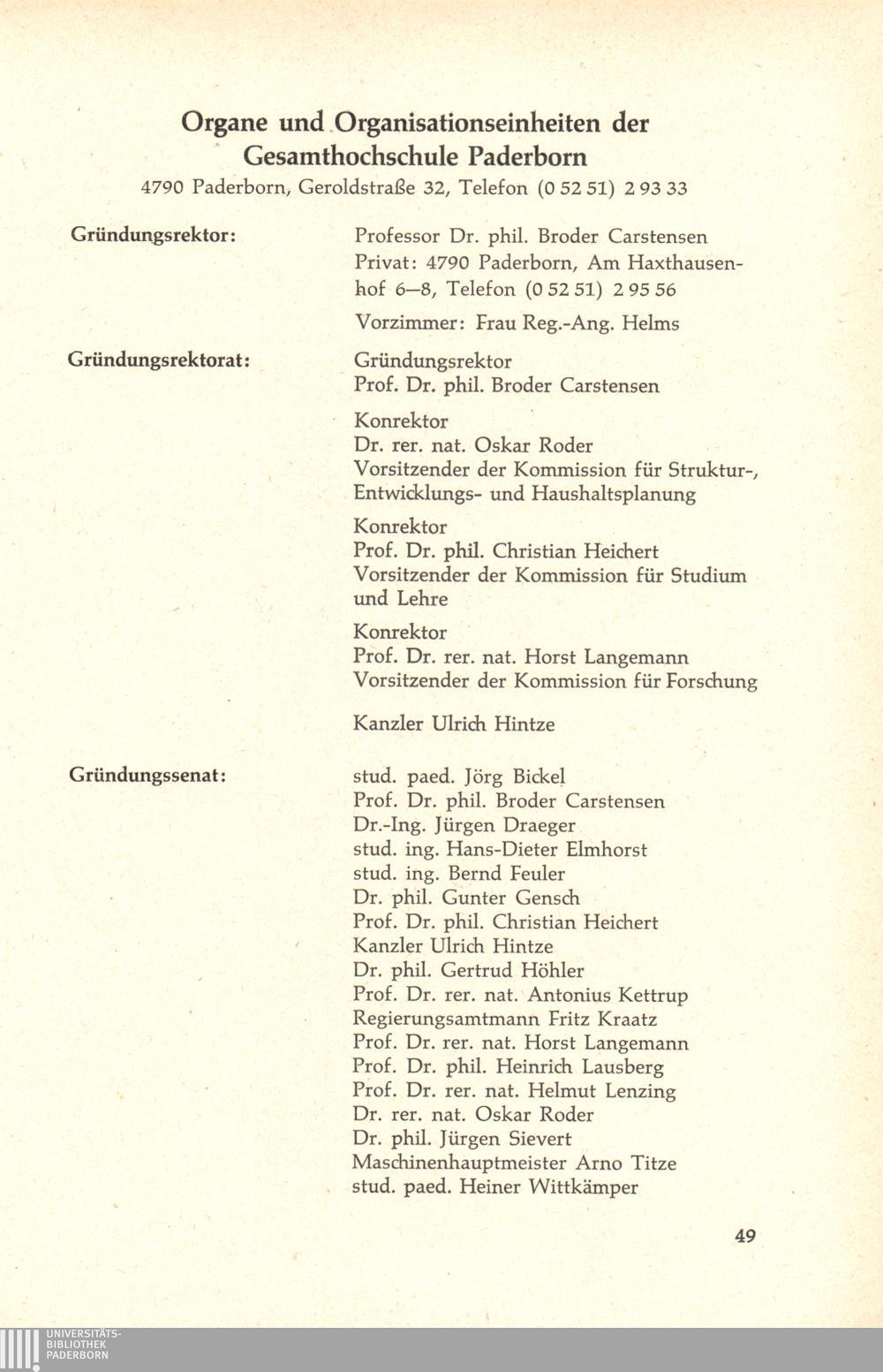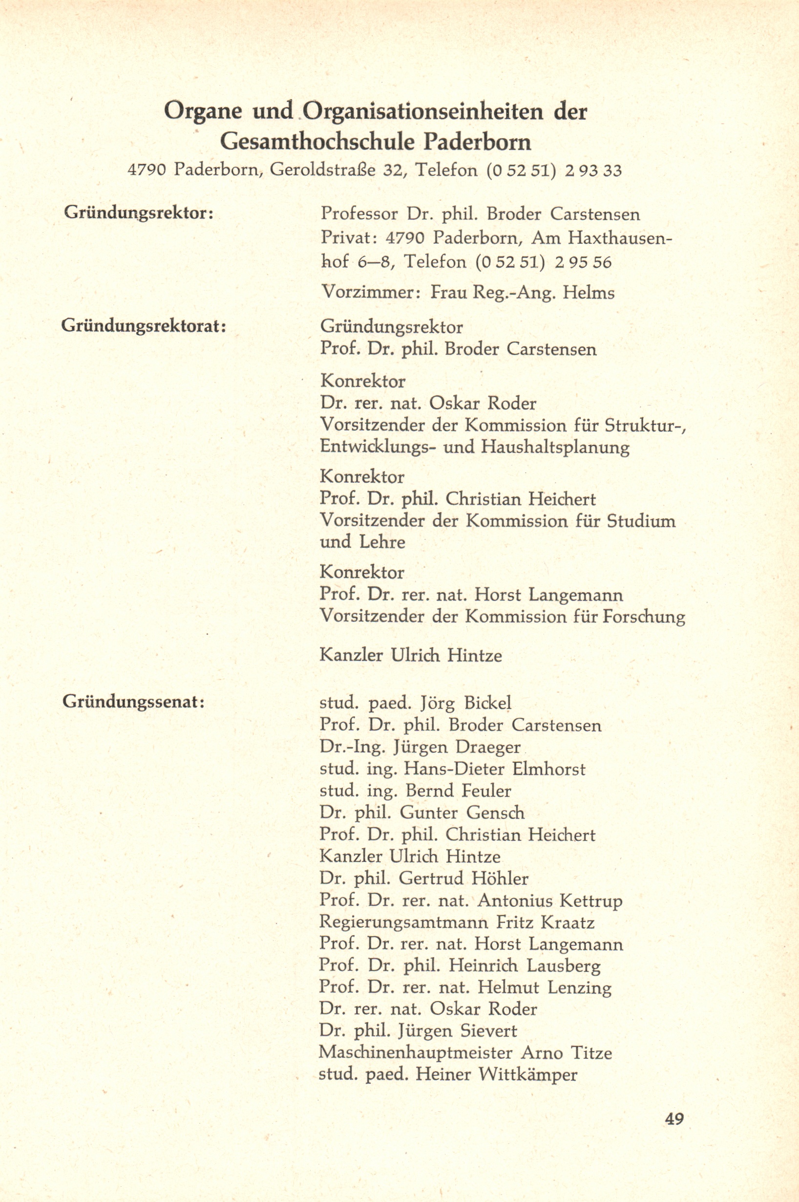 Organe und Organisationseinheiten der Gesamthochschule Paderborn