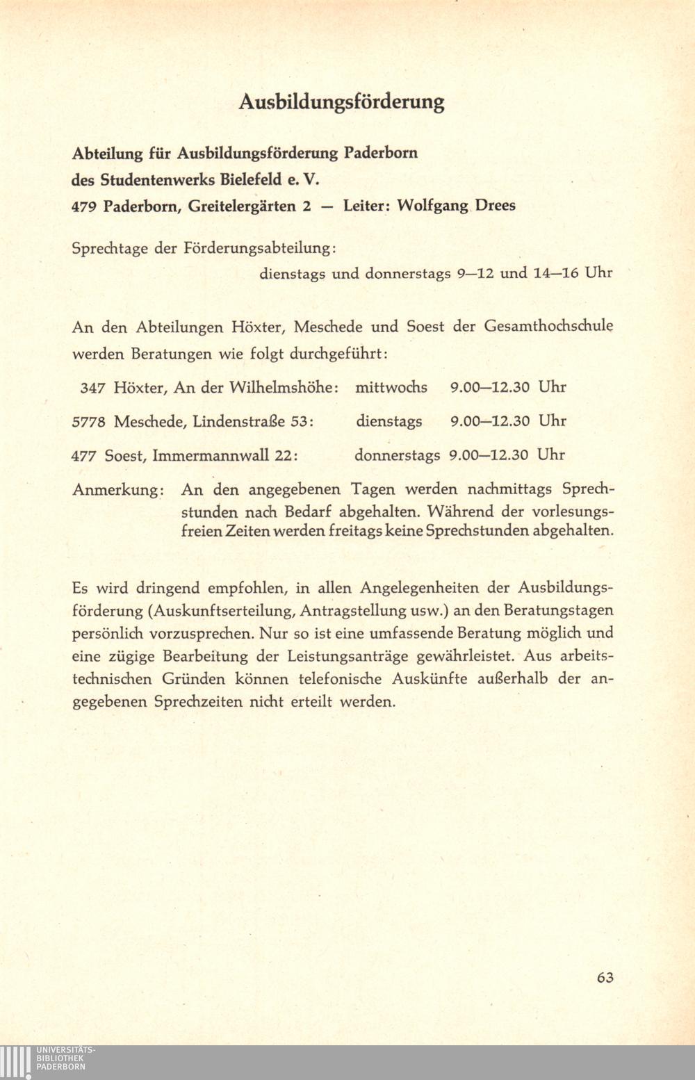 Personal- und Vorlesungsverzeichnis für die Gesamthochschule Paderborn