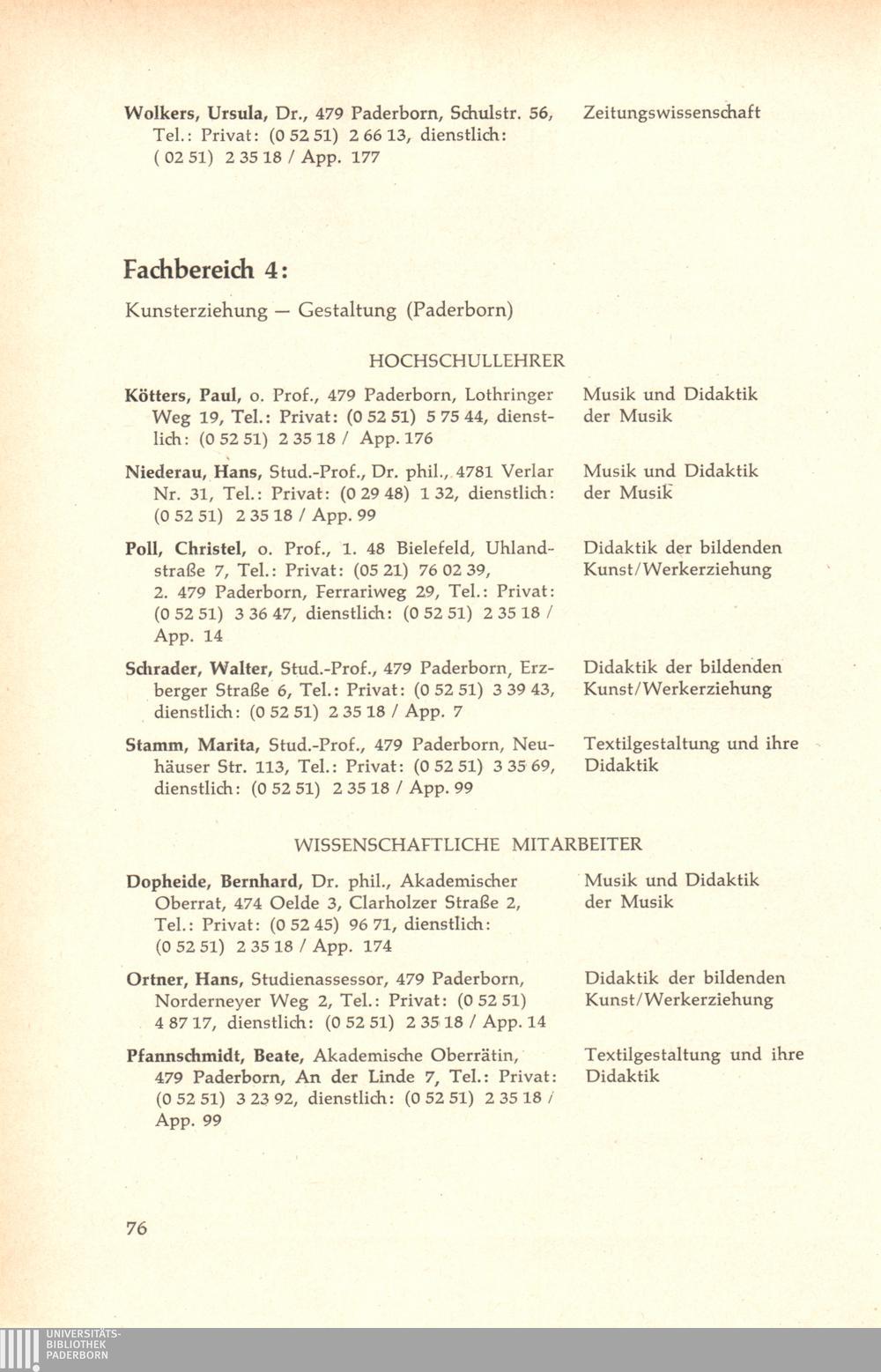 Personal- und Vorlesungsverzeichnis für die Gesamthochschule Paderborn