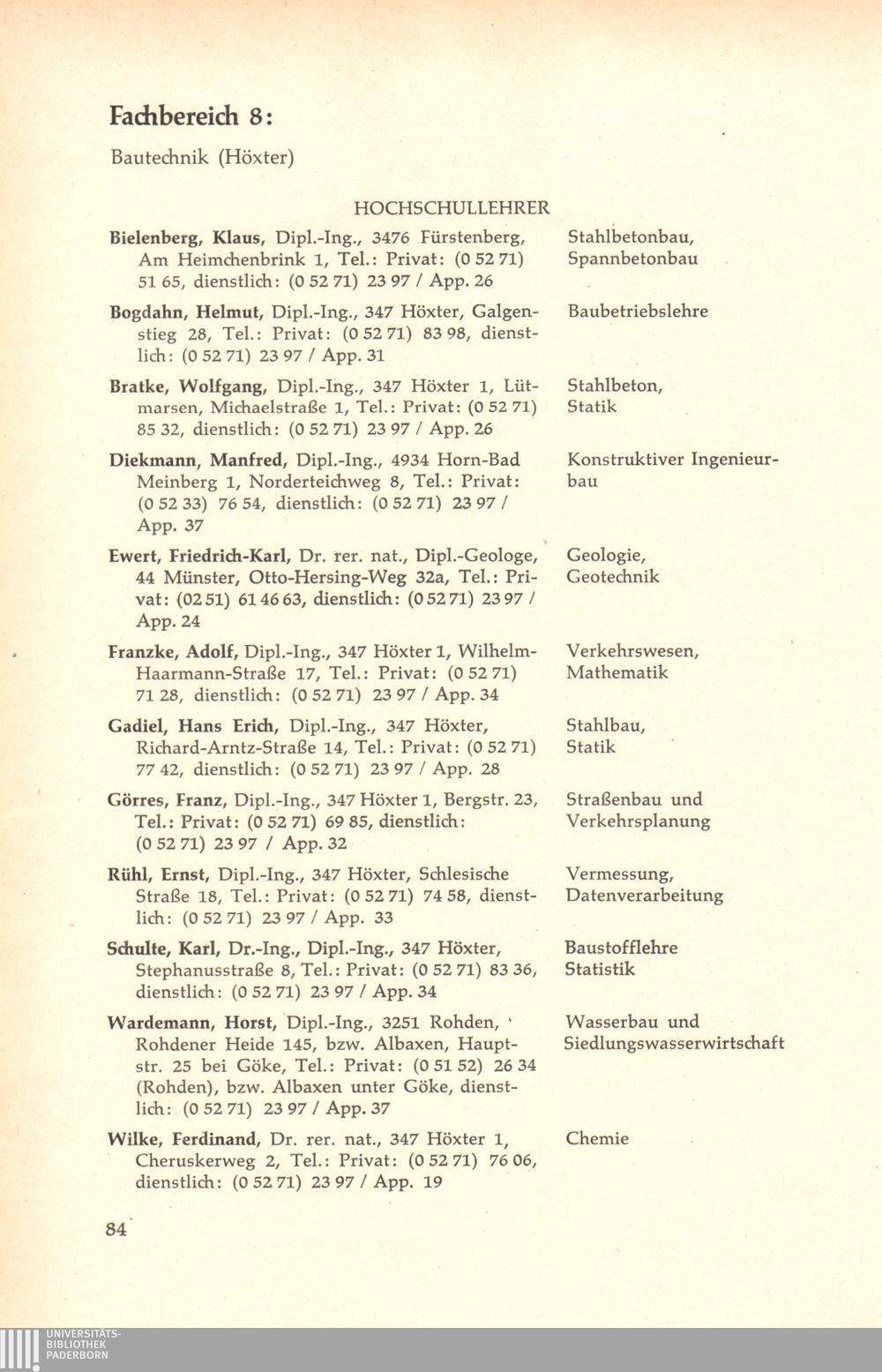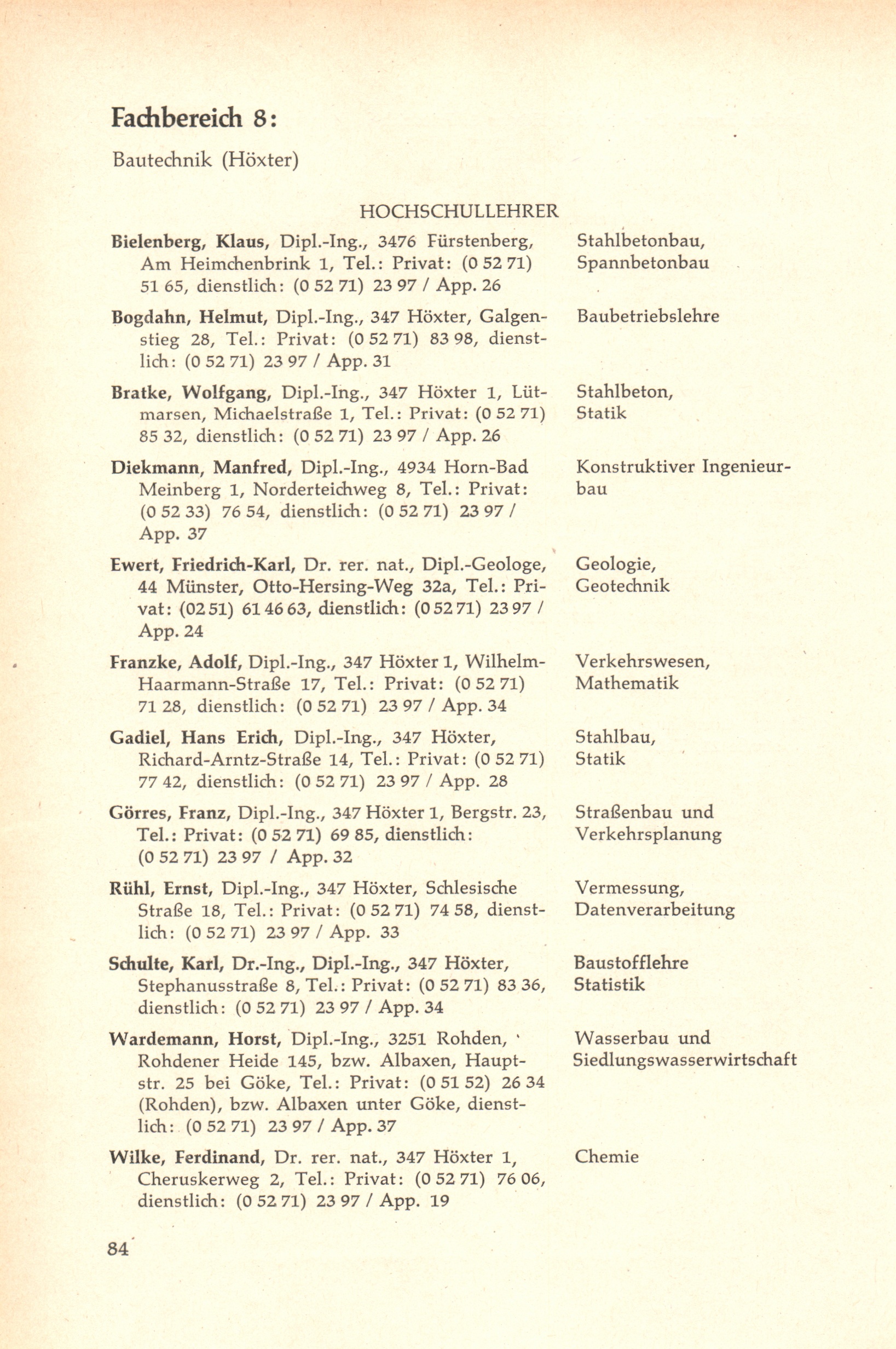 Personal- und Vorlesungsverzeichnis für die Gesamthochschule Paderborn