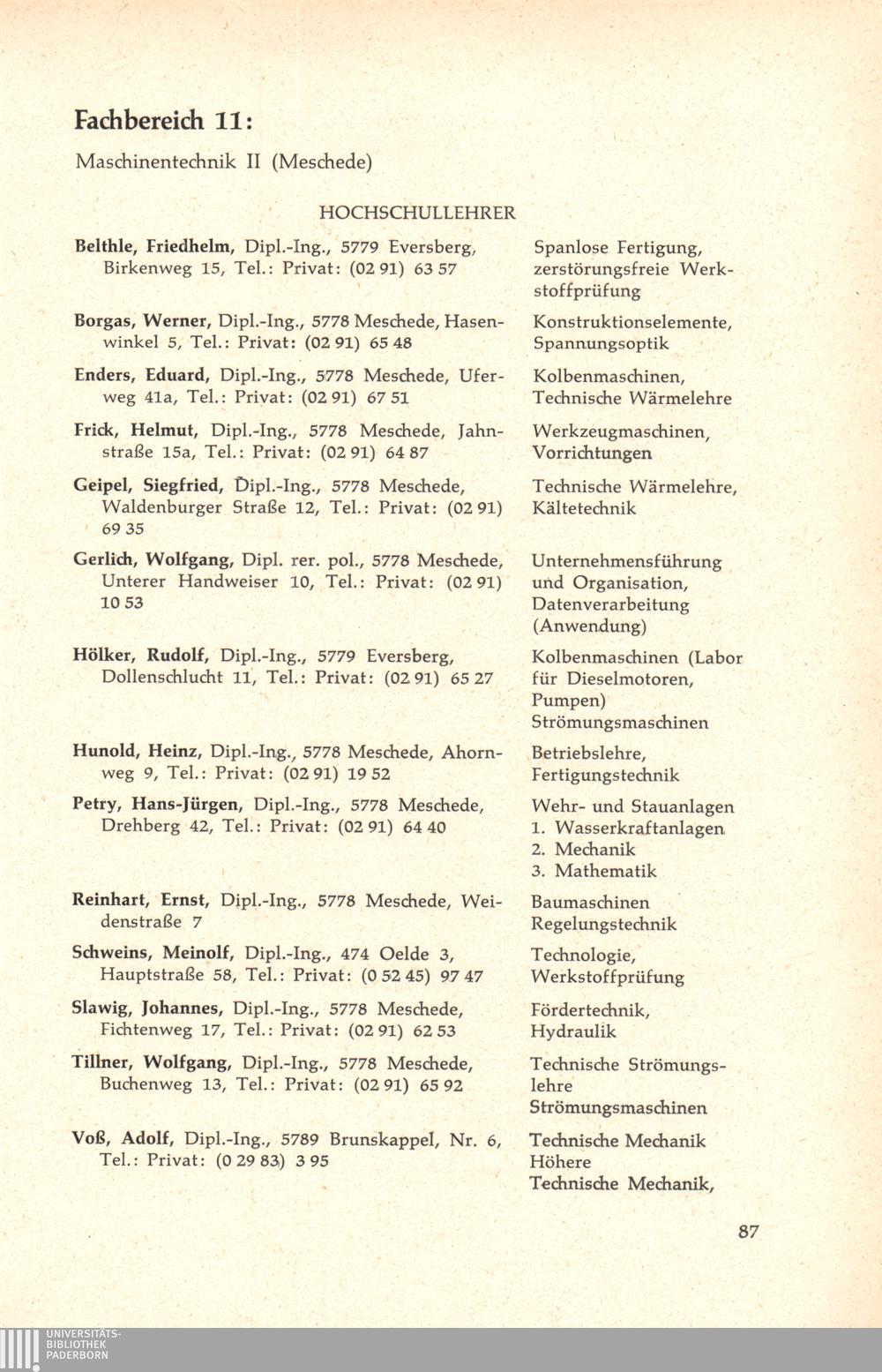 Personal- und Vorlesungsverzeichnis für die Gesamthochschule Paderborn