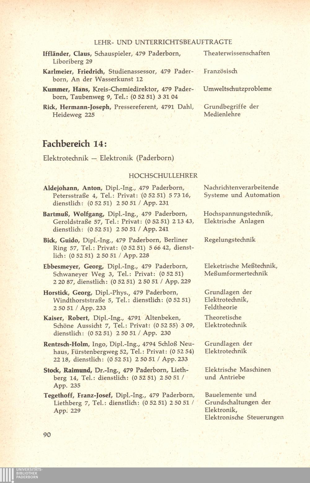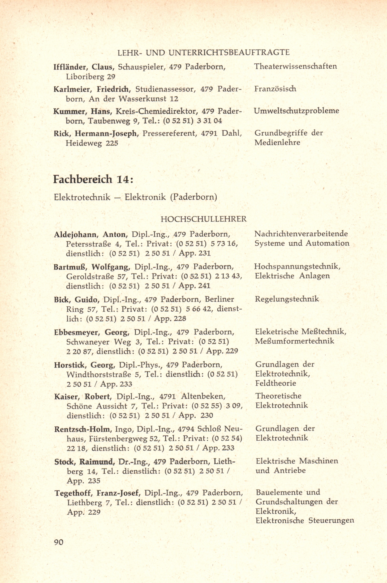 Personal- und Vorlesungsverzeichnis für die Gesamthochschule Paderborn