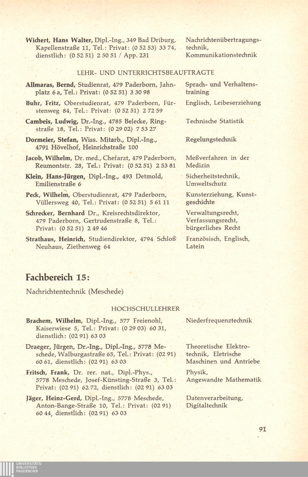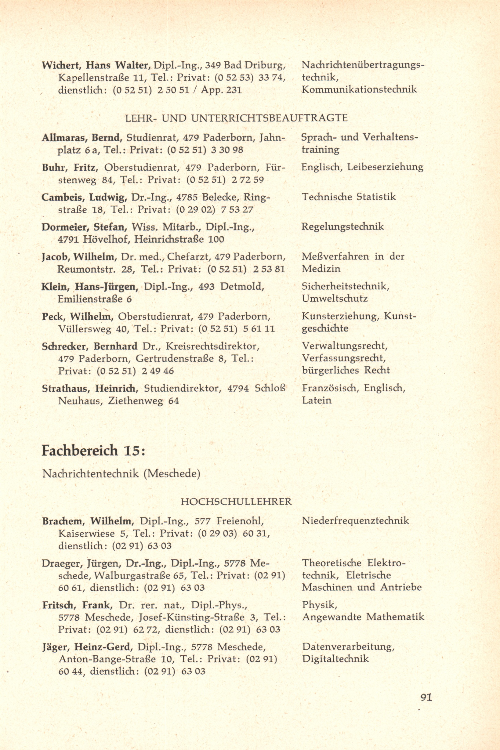 Personal- und Vorlesungsverzeichnis für die Gesamthochschule Paderborn
