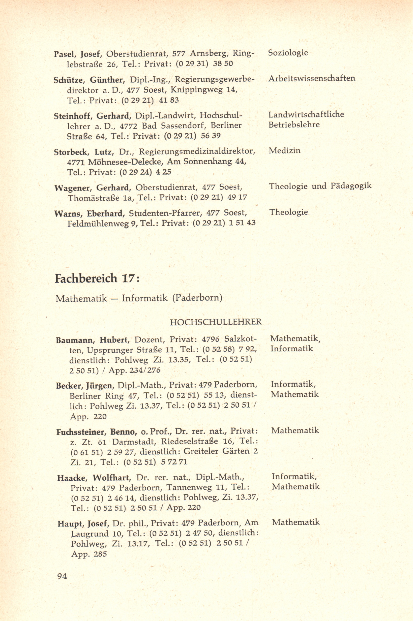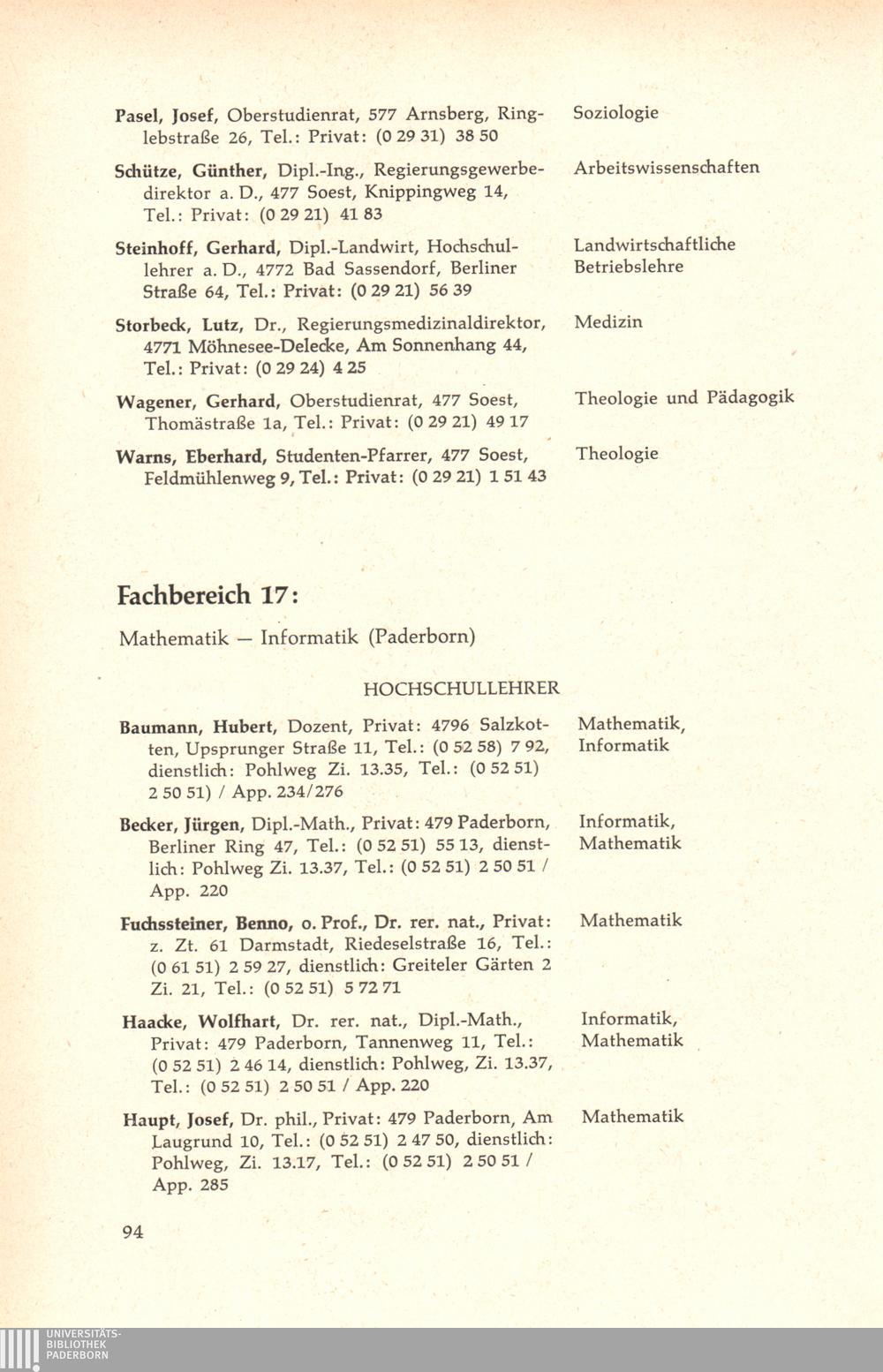 Personal- und Vorlesungsverzeichnis für die Gesamthochschule Paderborn