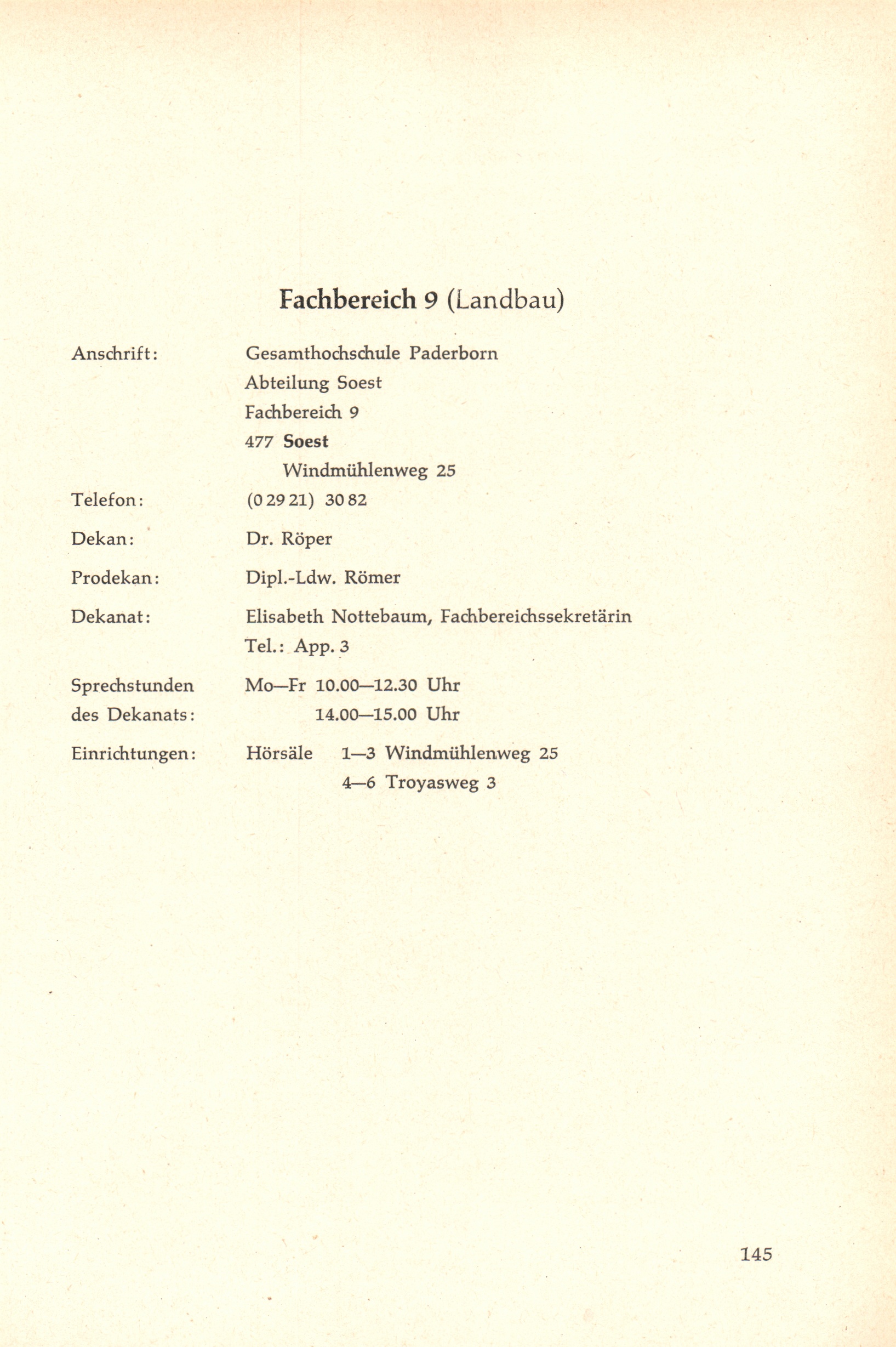 Personal- und Vorlesungsverzeichnis für die Gesamthochschule Paderborn