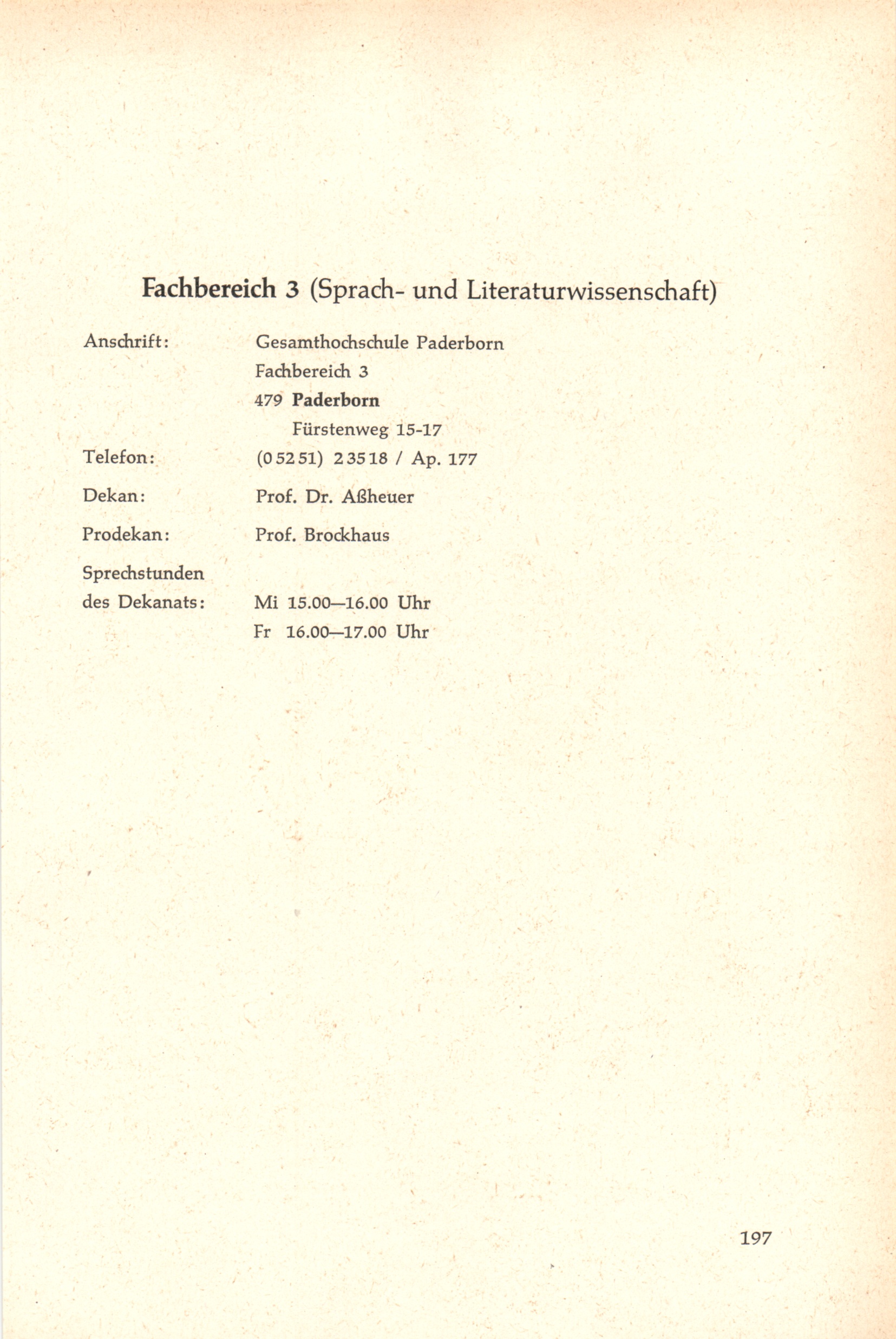 Personal- und Vorlesungsverzeichnis für die Gesamthochschule Paderborn