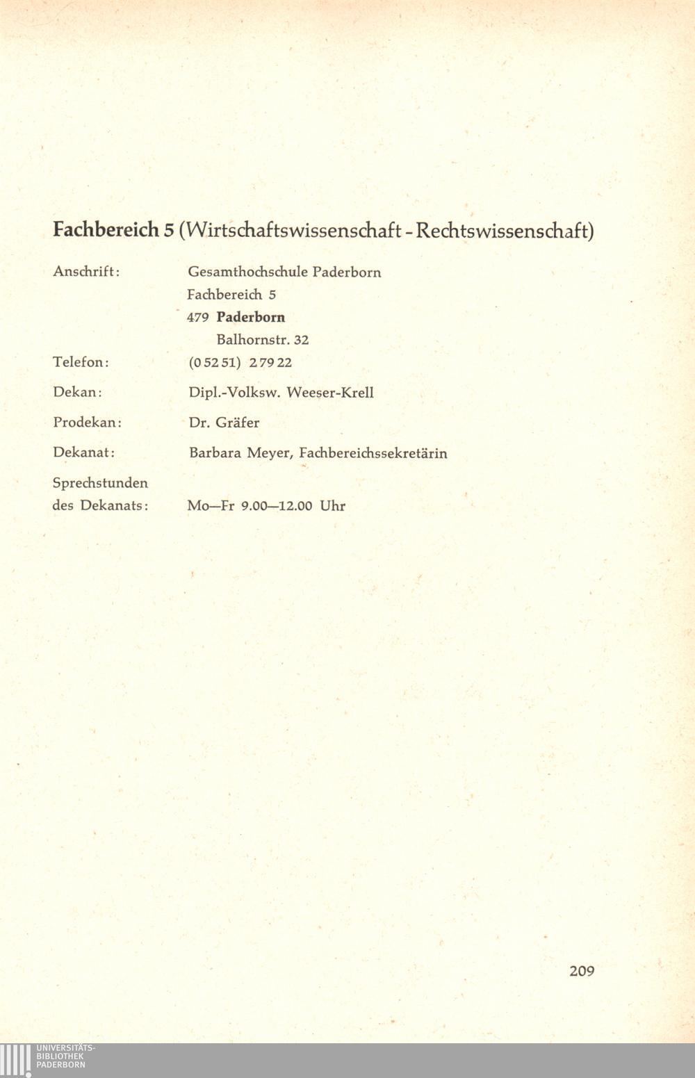 Personal- und Vorlesungsverzeichnis für die Gesamthochschule Paderborn