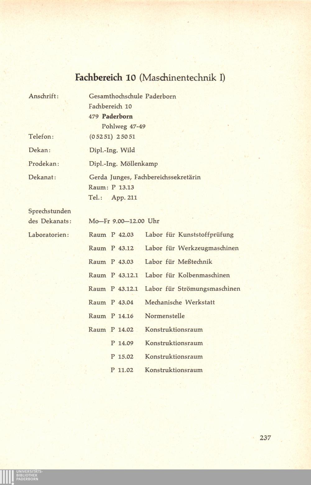 Personal- und Vorlesungsverzeichnis für die Gesamthochschule Paderborn
