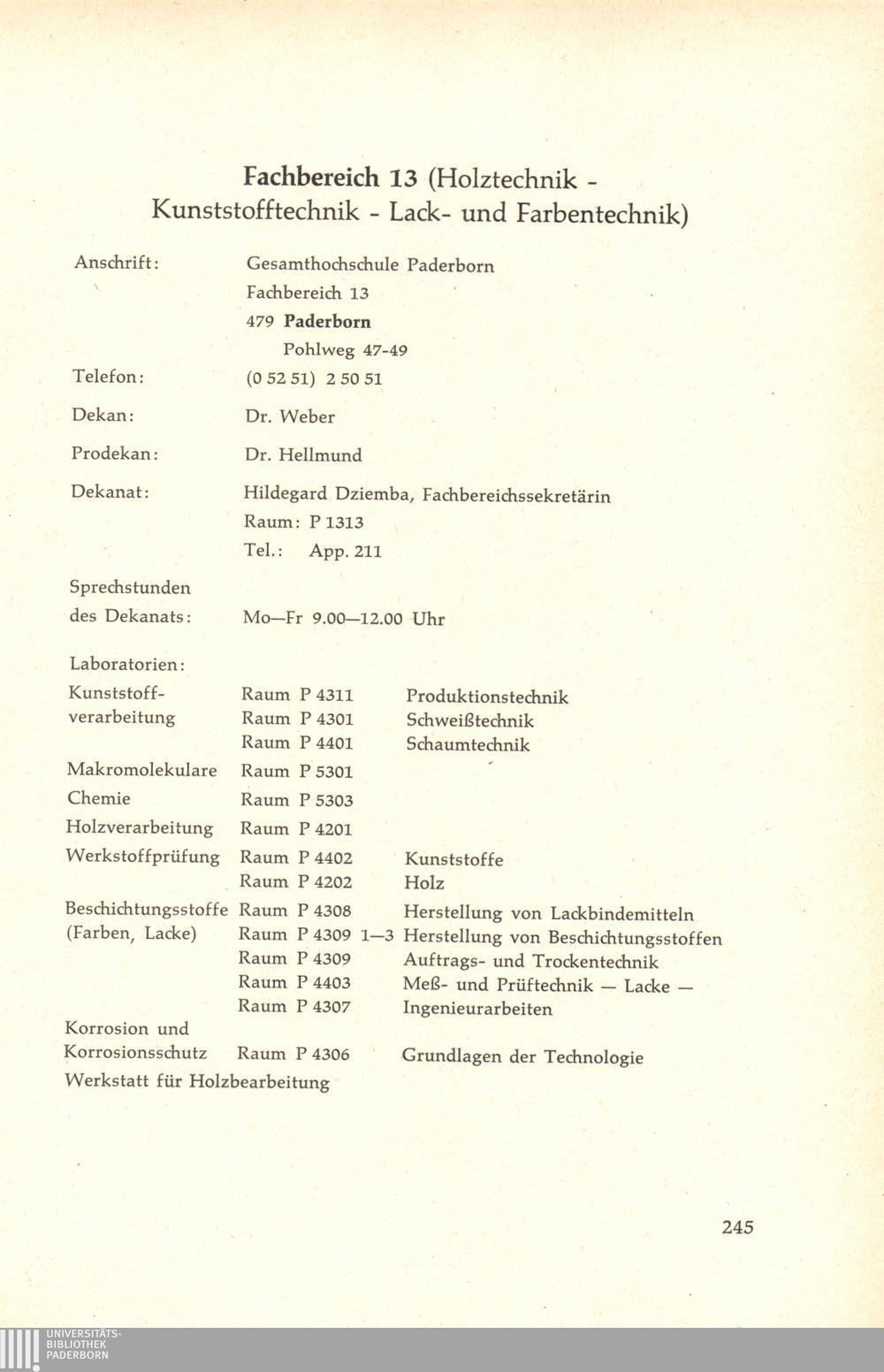Fachbereich 13: Holztechnik - Kunststofftechnik - Lack- und Farbentechnik
