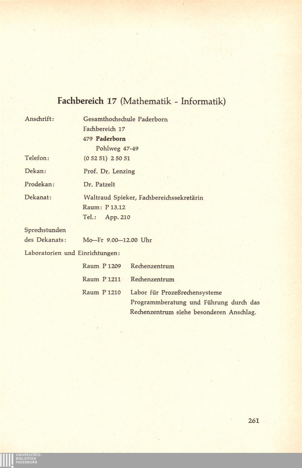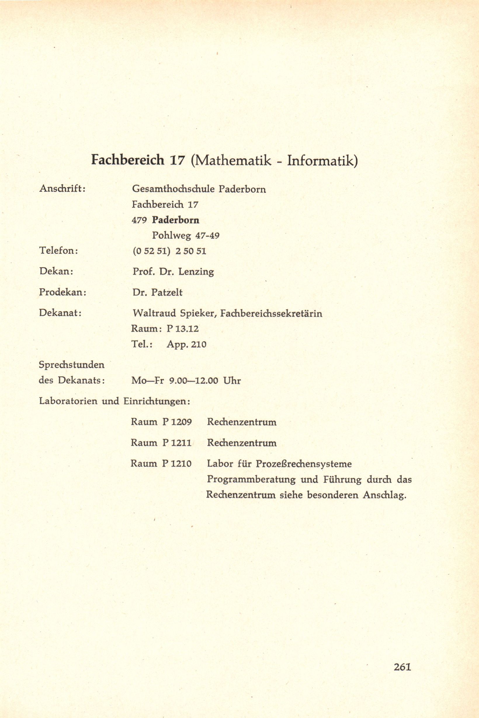 Personal- und Vorlesungsverzeichnis für die Gesamthochschule Paderborn