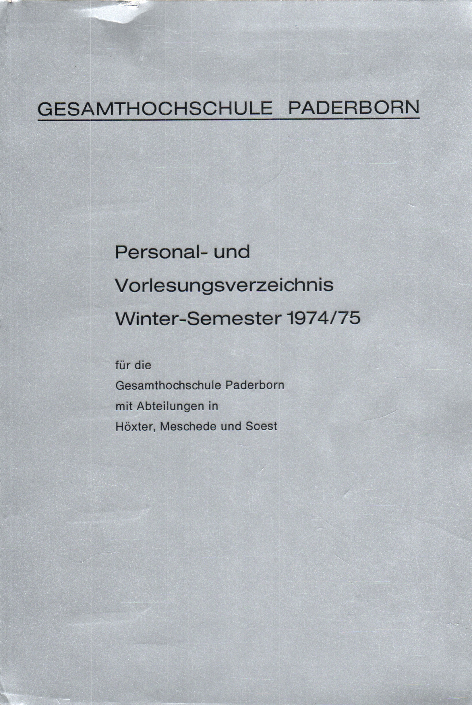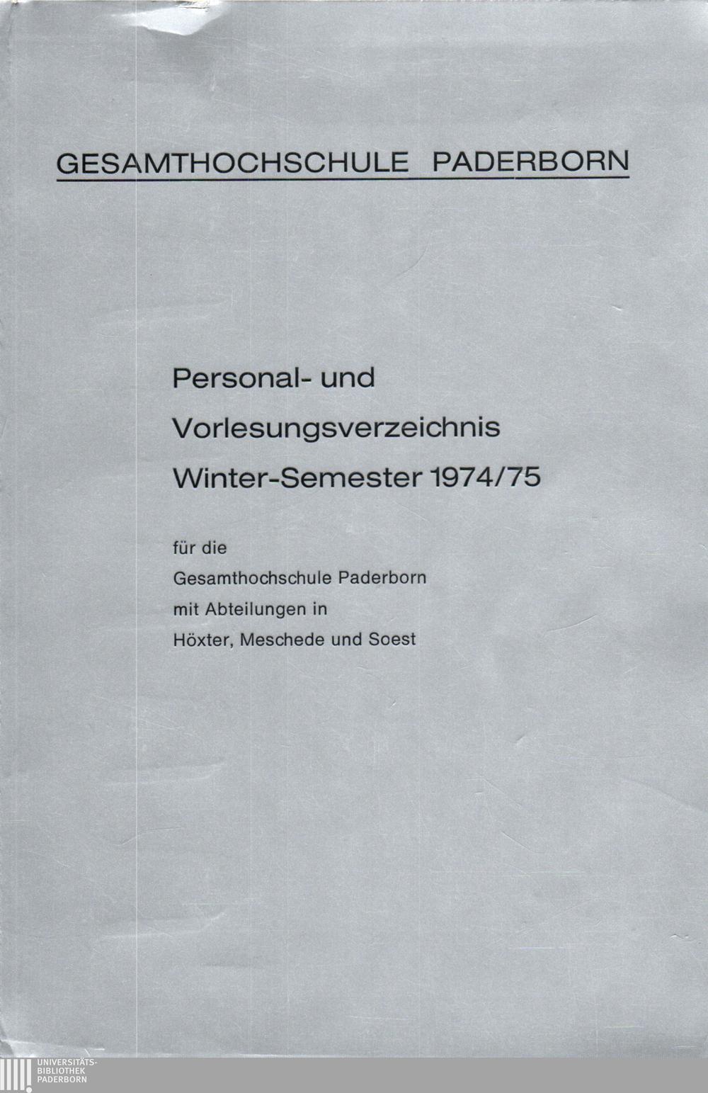 Personal- und Vorlesungsverzeichnis für die Gesamthochschule Paderborn