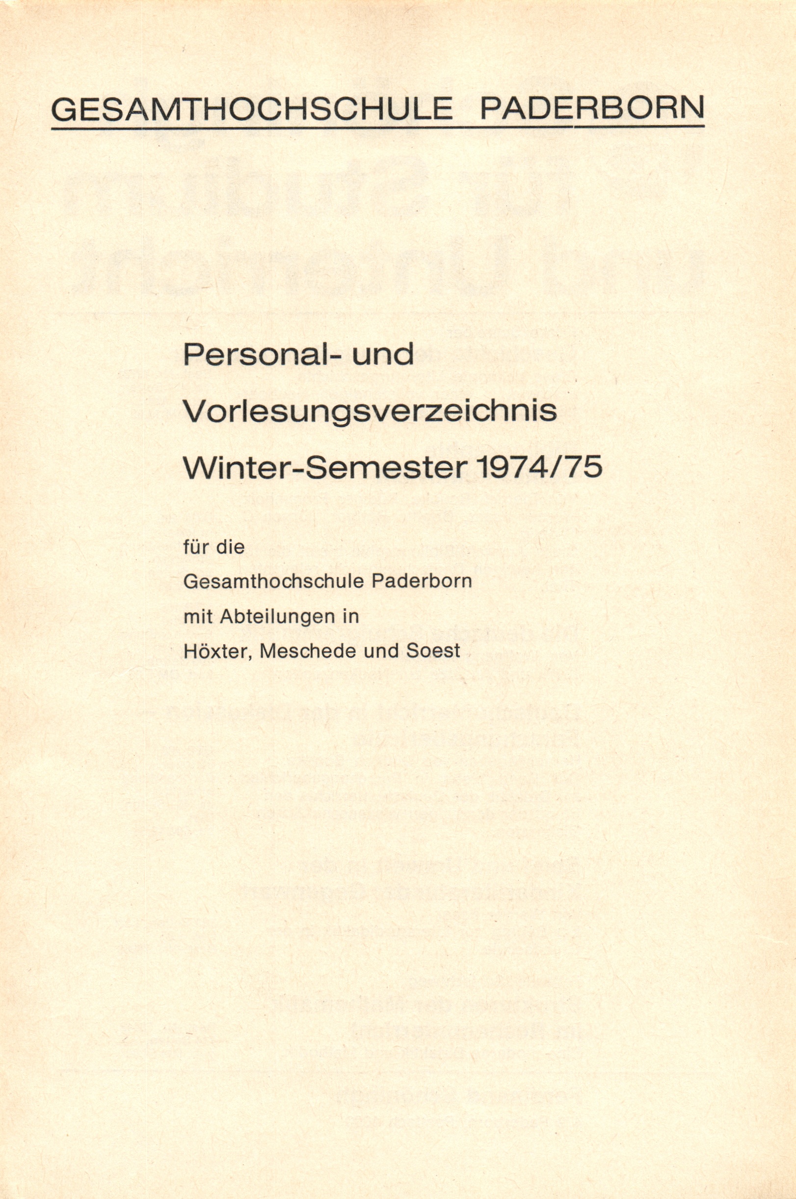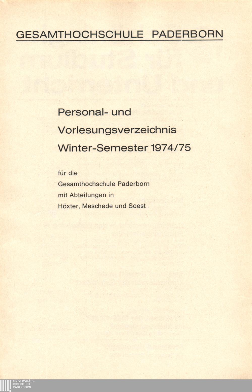Personal- und Vorlesungsverzeichnis für die Gesamthochschule Paderborn