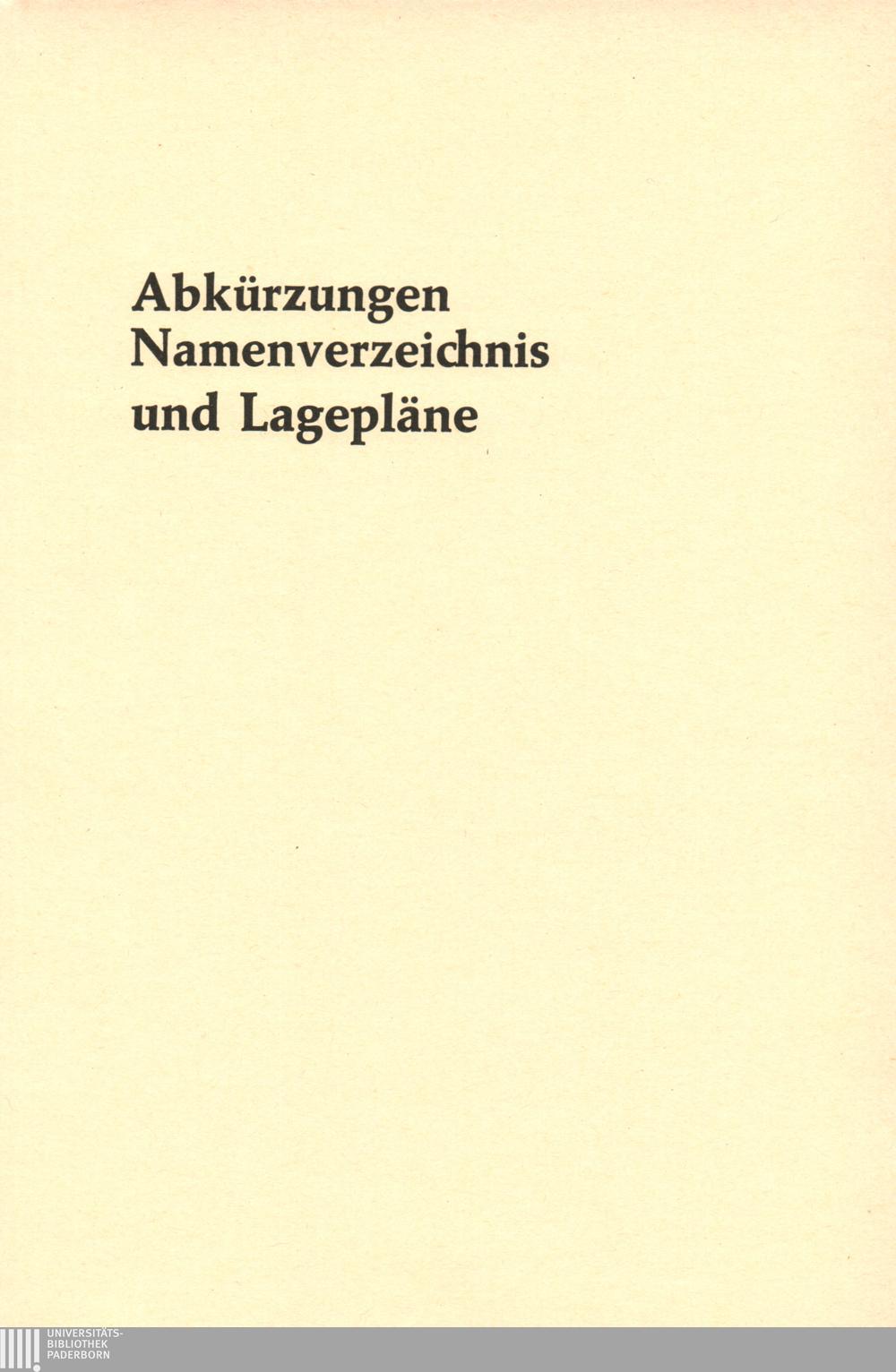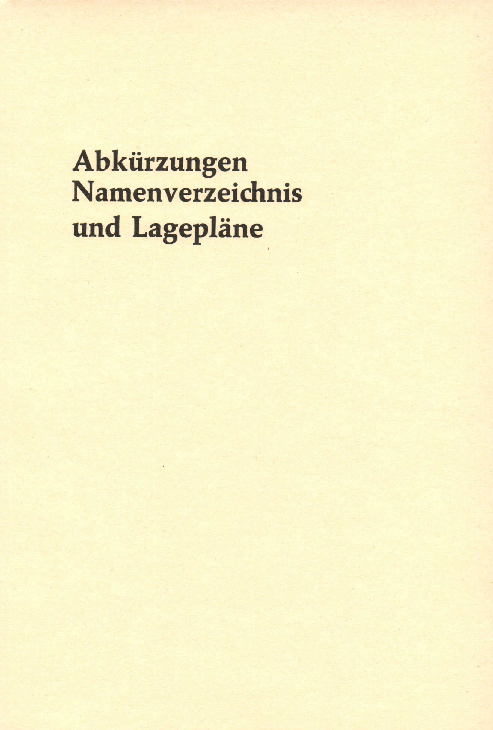 Abkürzungen, Namenverzeichnis, Lagepläne