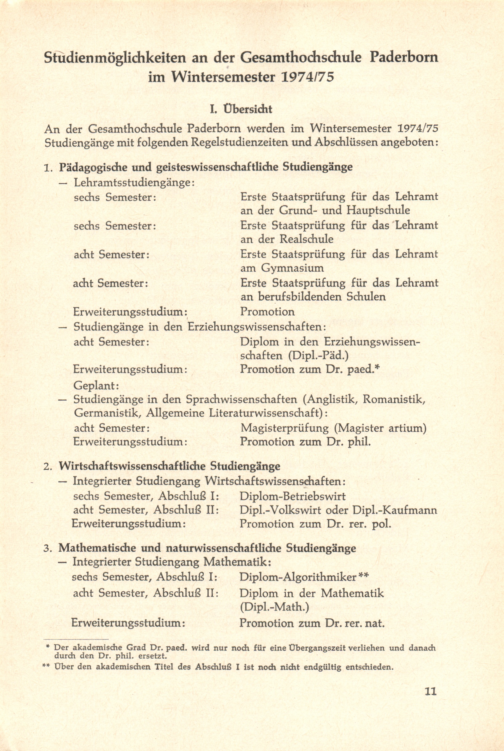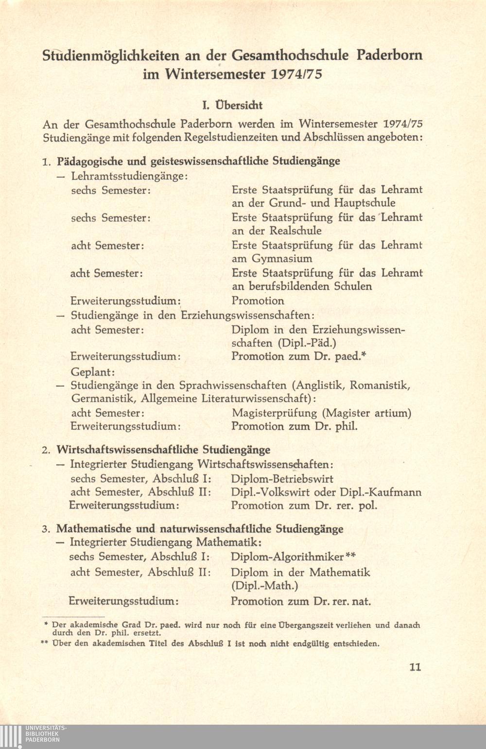Studienmöglichkeiten an der Gesamthochschule Paderborn