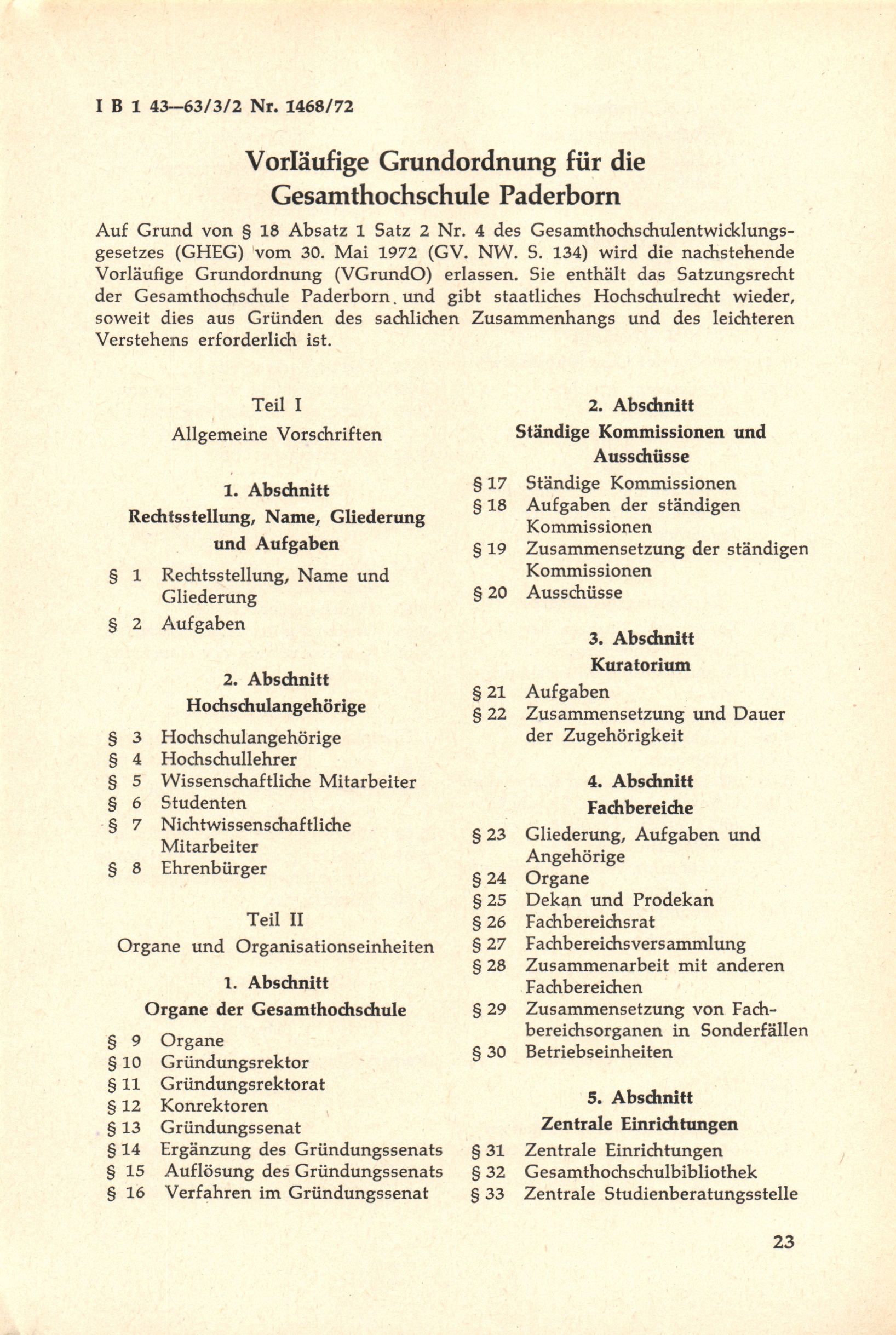 Vorläufige Grundordnung