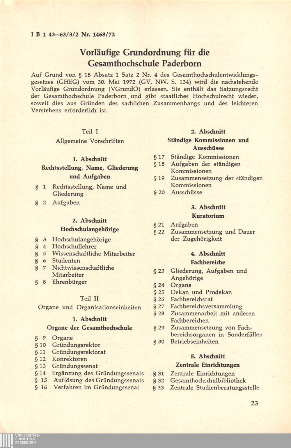 Personal- und Vorlesungsverzeichnis für die Gesamthochschule Paderborn