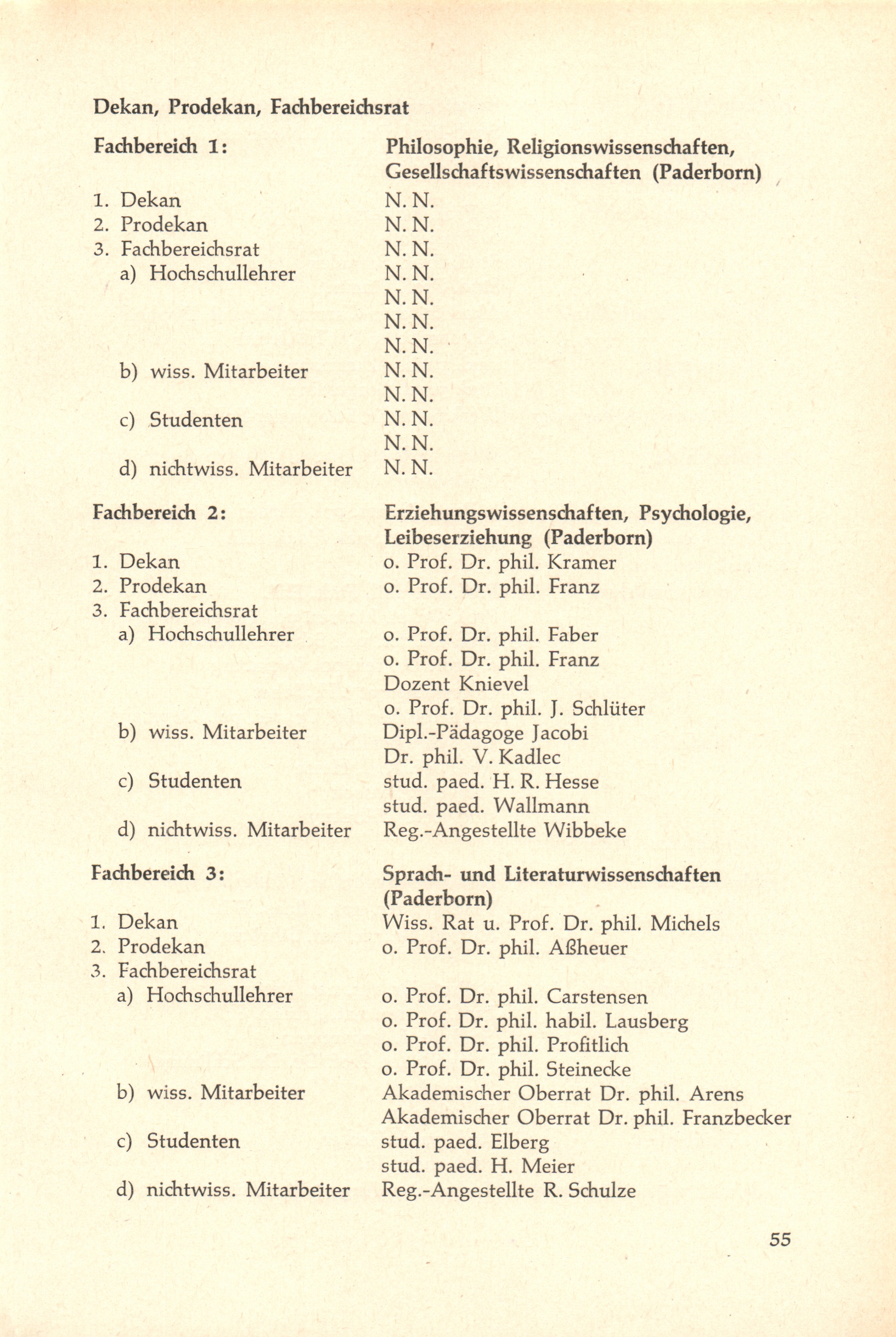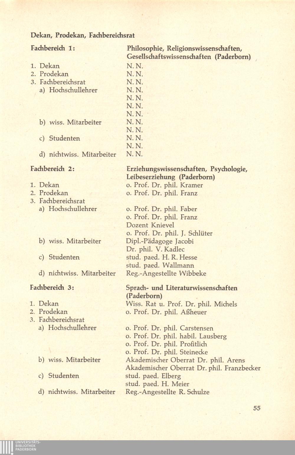 Personal- und Vorlesungsverzeichnis für die Gesamthochschule Paderborn