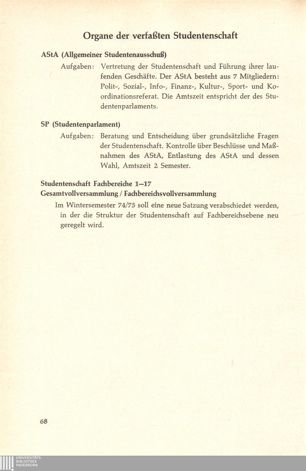 Organe und Organisationseinheiten der Gesamthochschule Paderborn