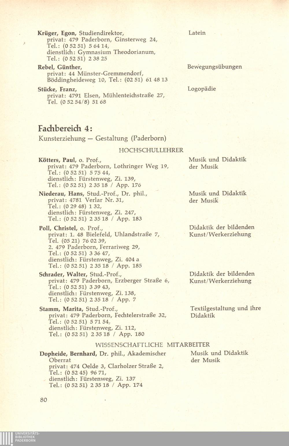 Personal- und Vorlesungsverzeichnis für die Gesamthochschule Paderborn