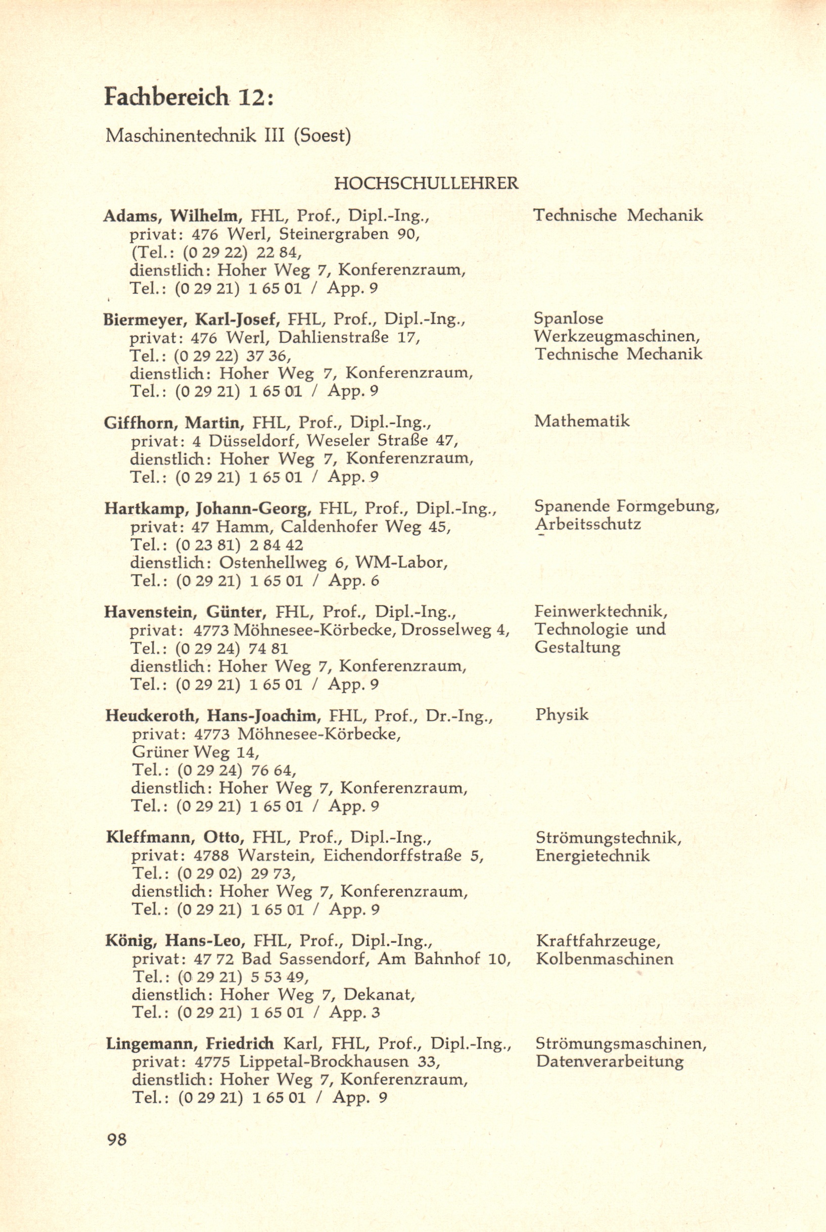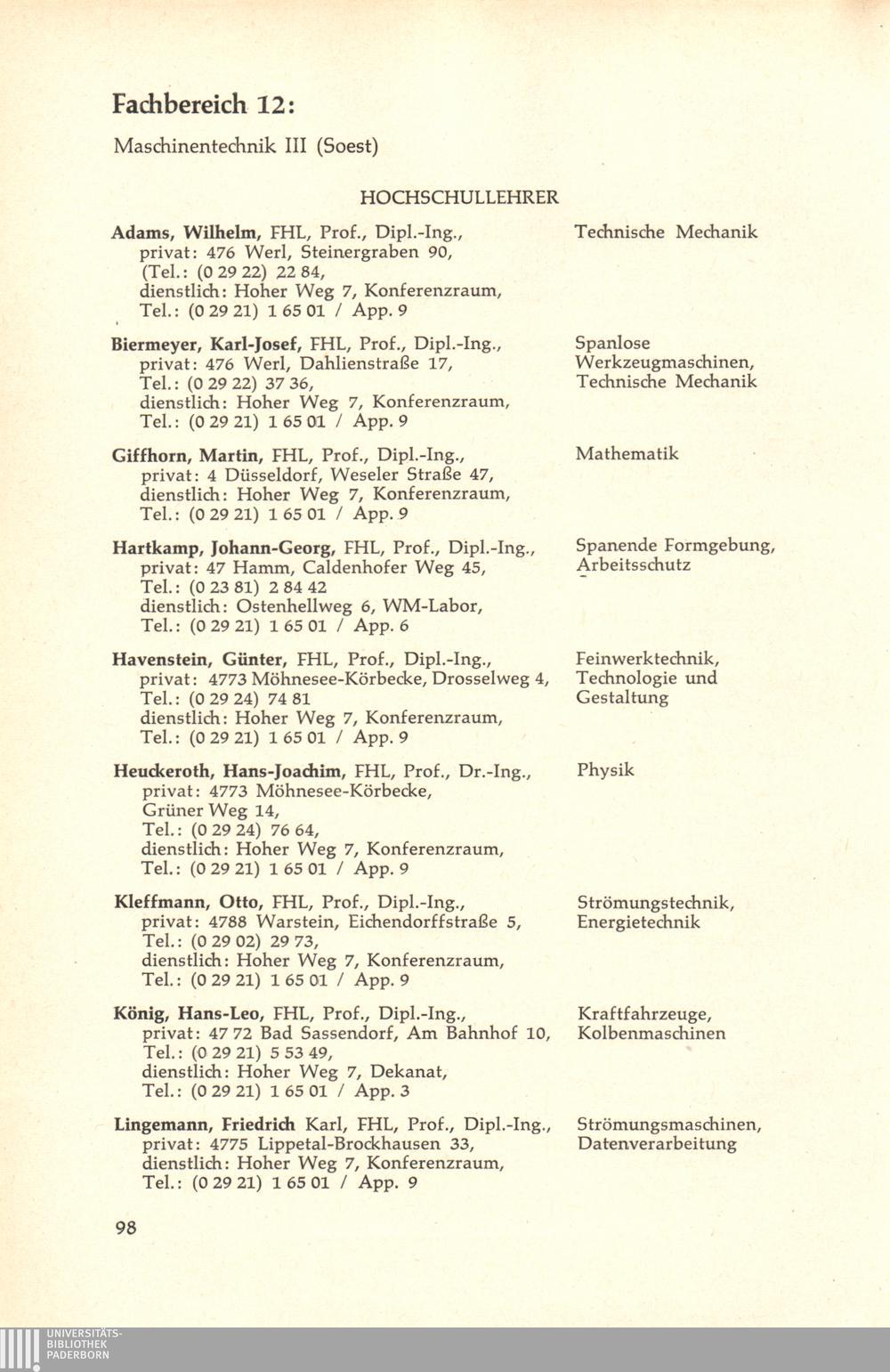 Personal- und Vorlesungsverzeichnis für die Gesamthochschule Paderborn