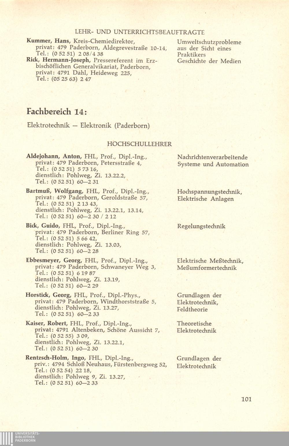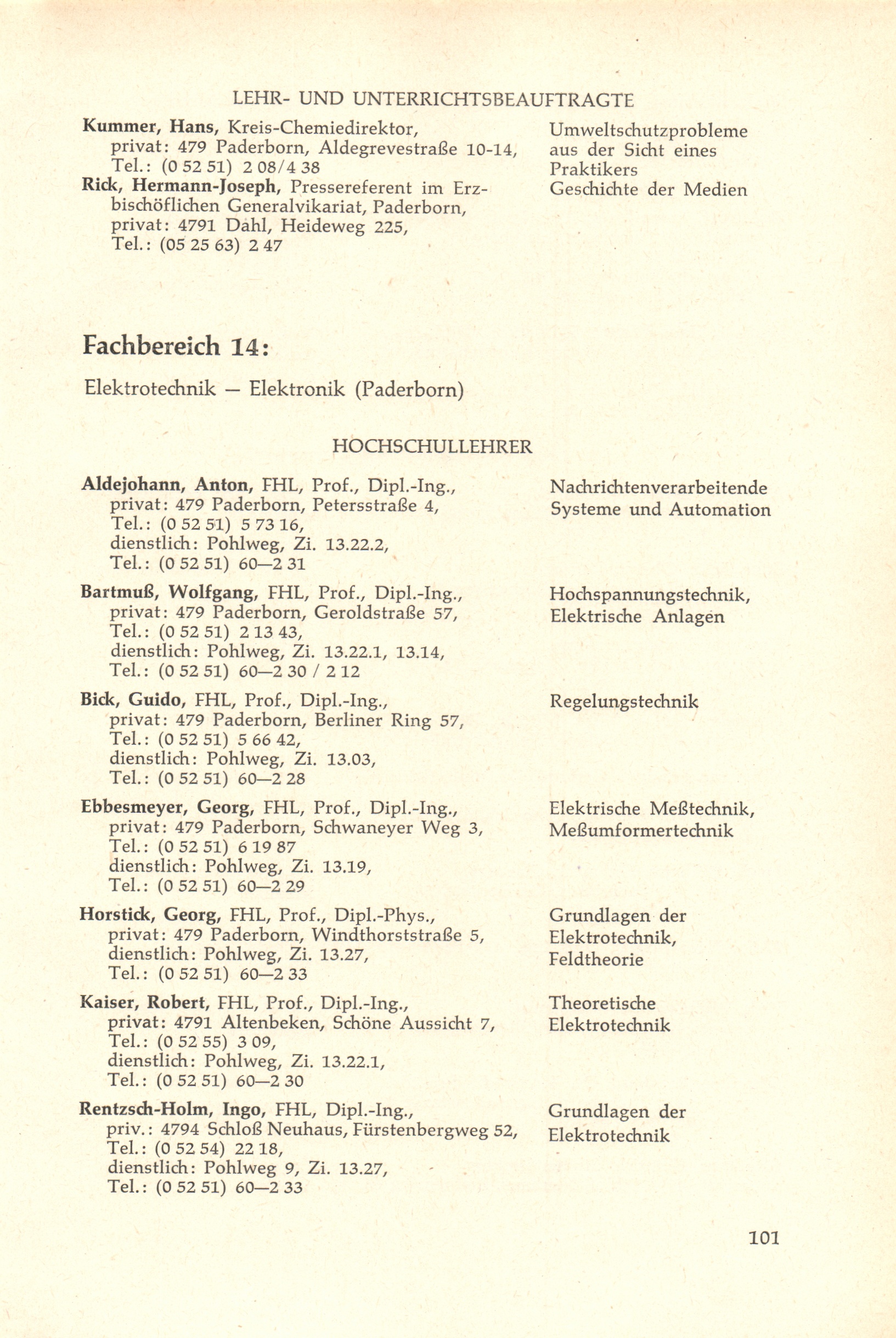 Personal- und Vorlesungsverzeichnis für die Gesamthochschule Paderborn