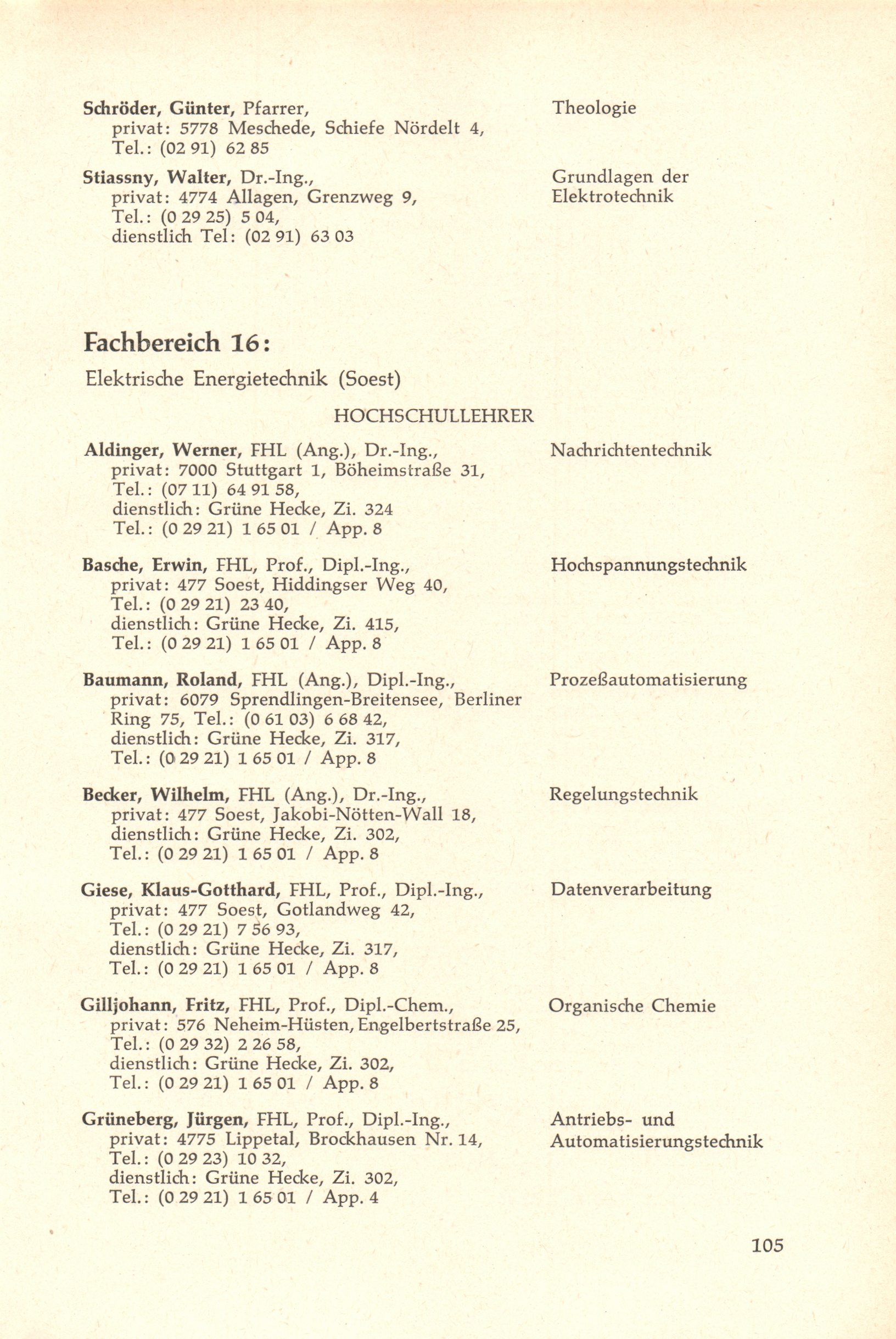 Fachbereich 16: Elektrische Energietechnik (Soest)