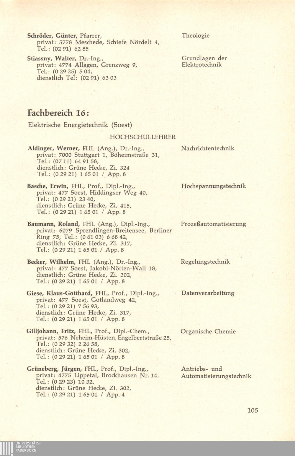 Personal- und Vorlesungsverzeichnis für die Gesamthochschule Paderborn