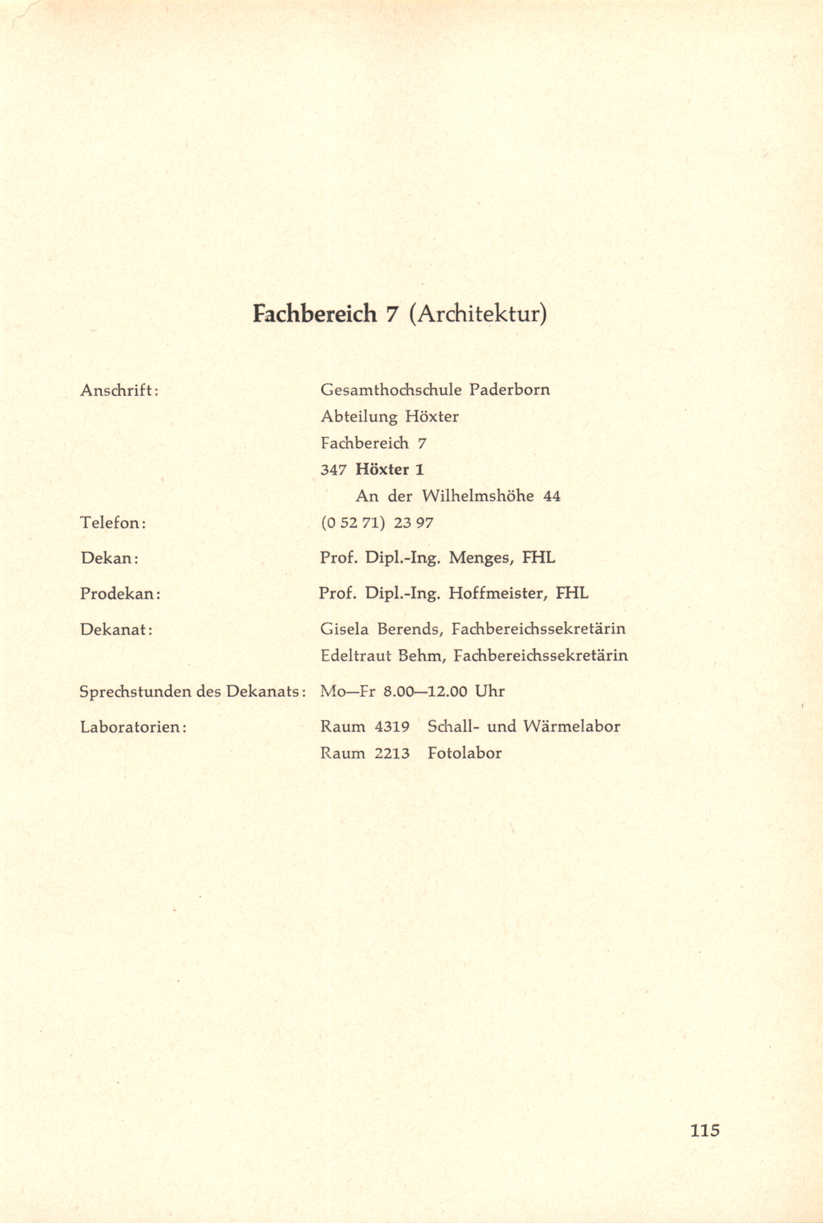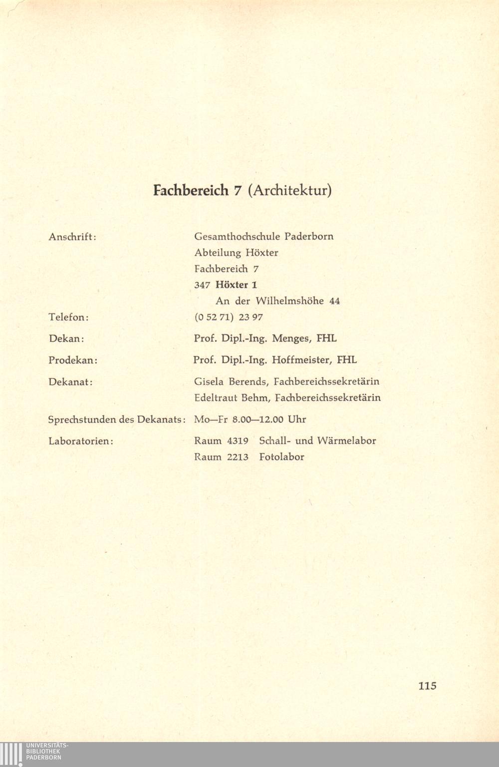 Personal- und Vorlesungsverzeichnis für die Gesamthochschule Paderborn