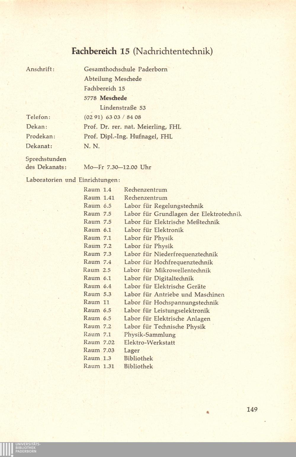 Fachbereich 15: Nachrichtentechnik