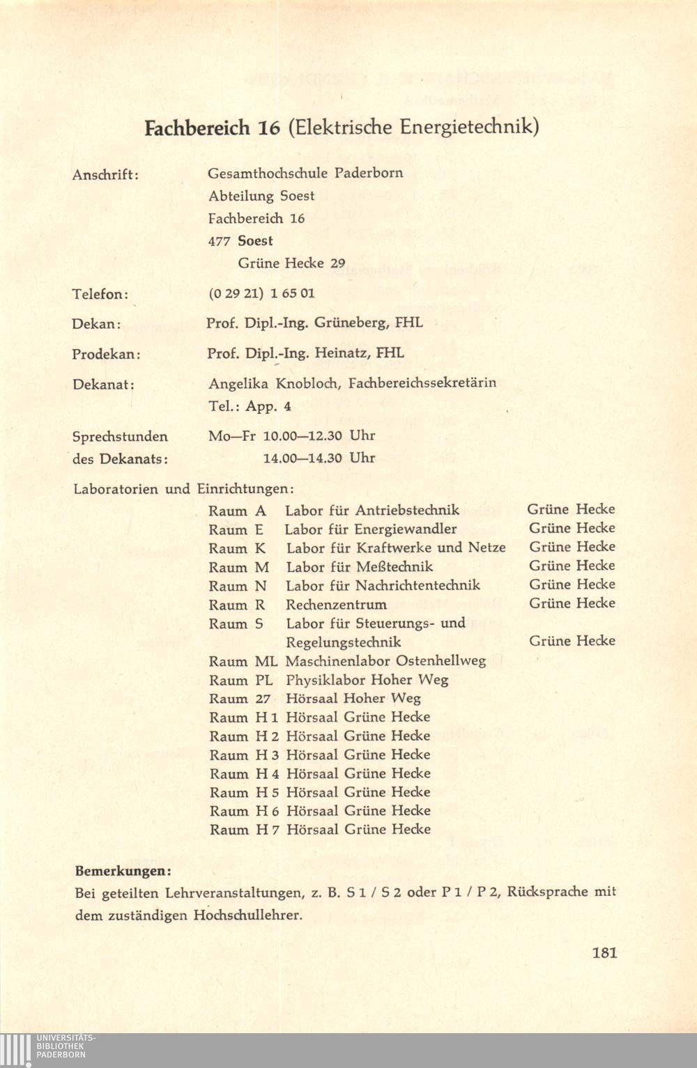 Personal- und Vorlesungsverzeichnis für die Gesamthochschule Paderborn