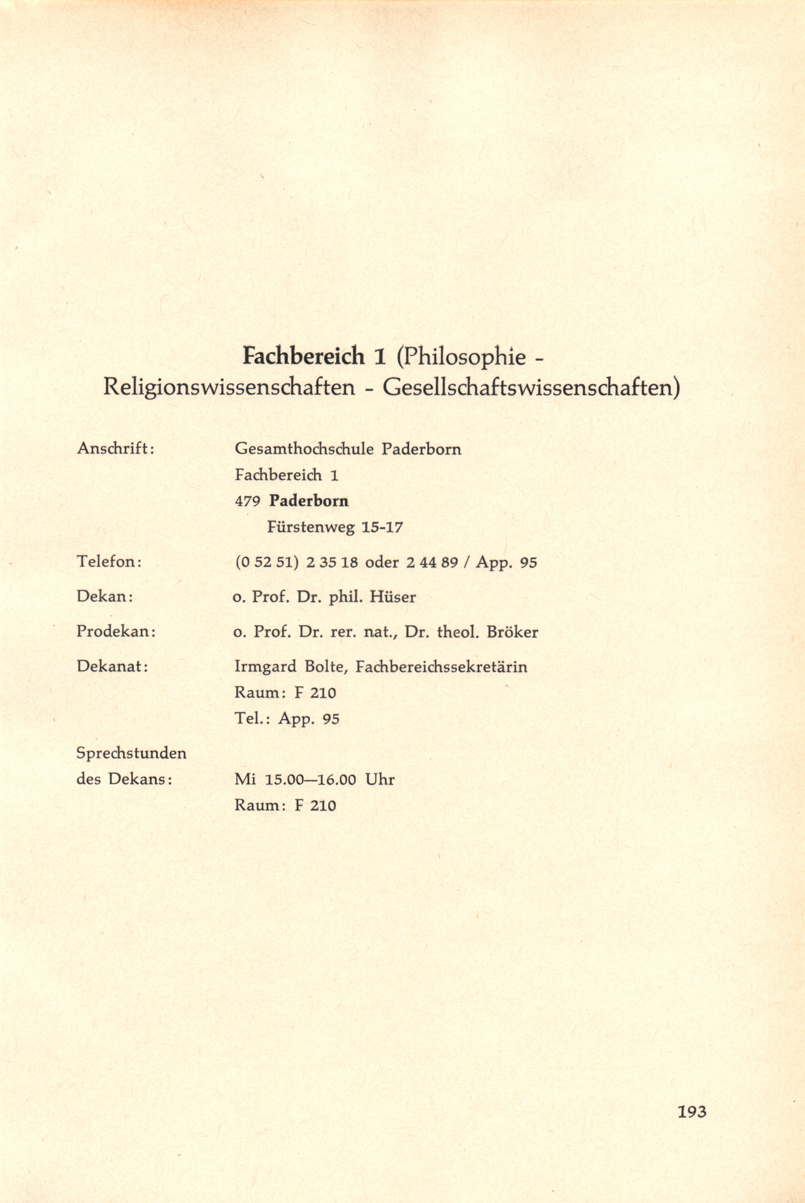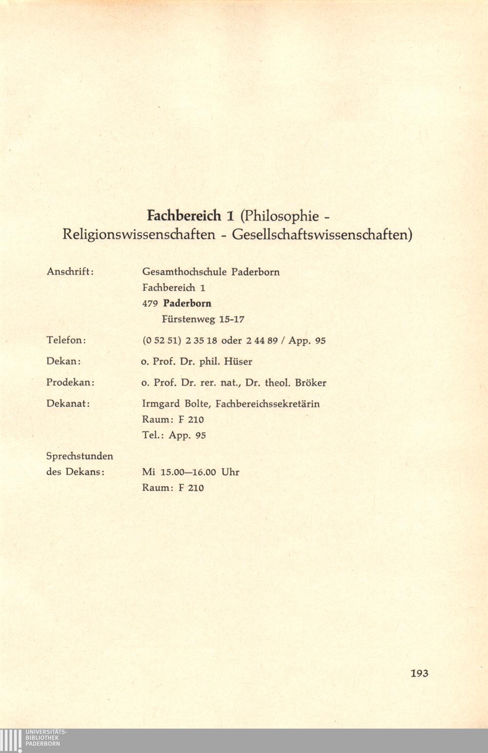 Personal- und Vorlesungsverzeichnis für die Gesamthochschule Paderborn