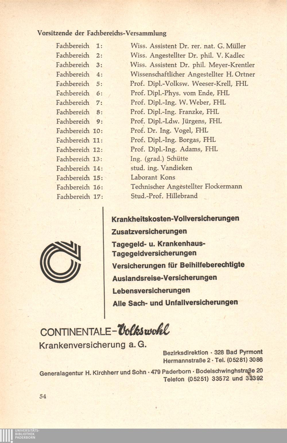 Personal- und Vorlesungsverzeichnis für die Gesamthochschule Paderborn