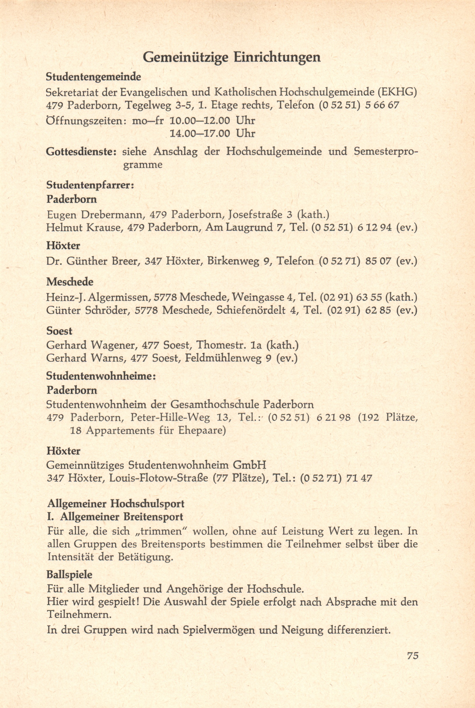 Personal- und Vorlesungsverzeichnis für die Gesamthochschule Paderborn