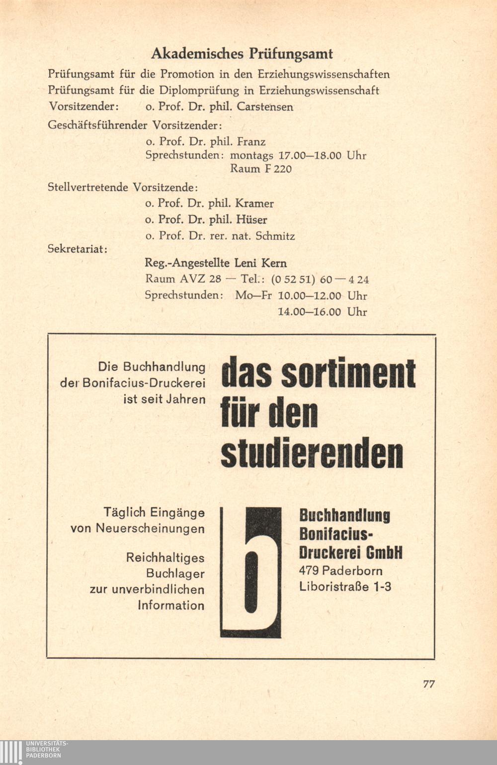 Personal- und Vorlesungsverzeichnis für die Gesamthochschule Paderborn