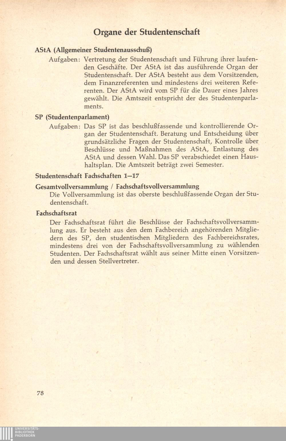 Organe und Organisationseinheiten der Gesamthochschule Paderborn