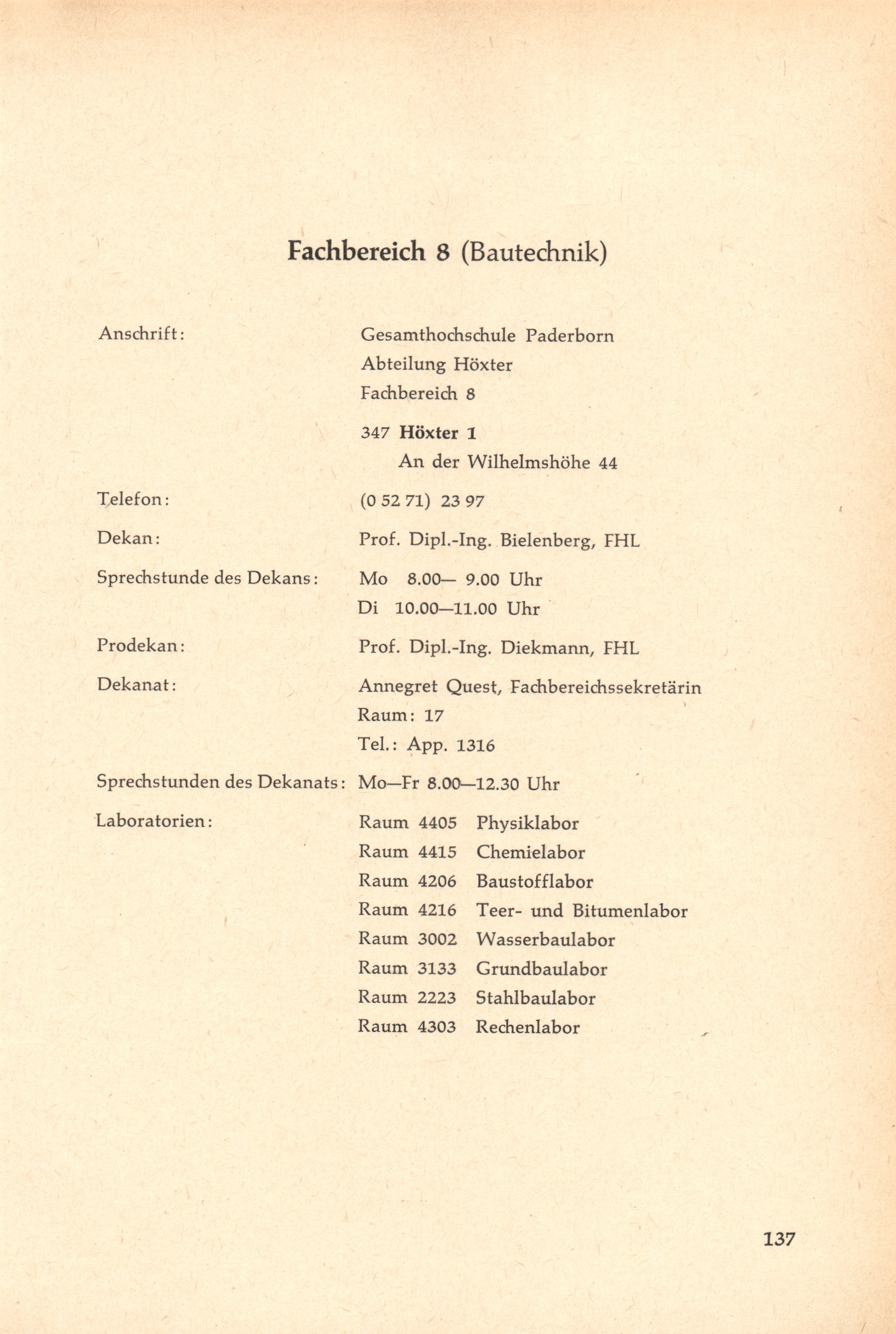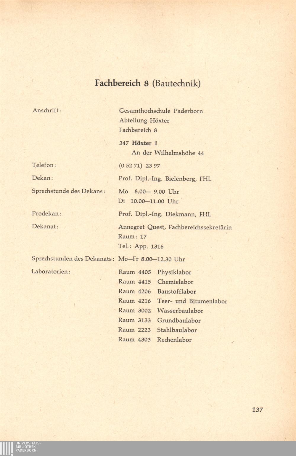 Personal- und Vorlesungsverzeichnis für die Gesamthochschule Paderborn