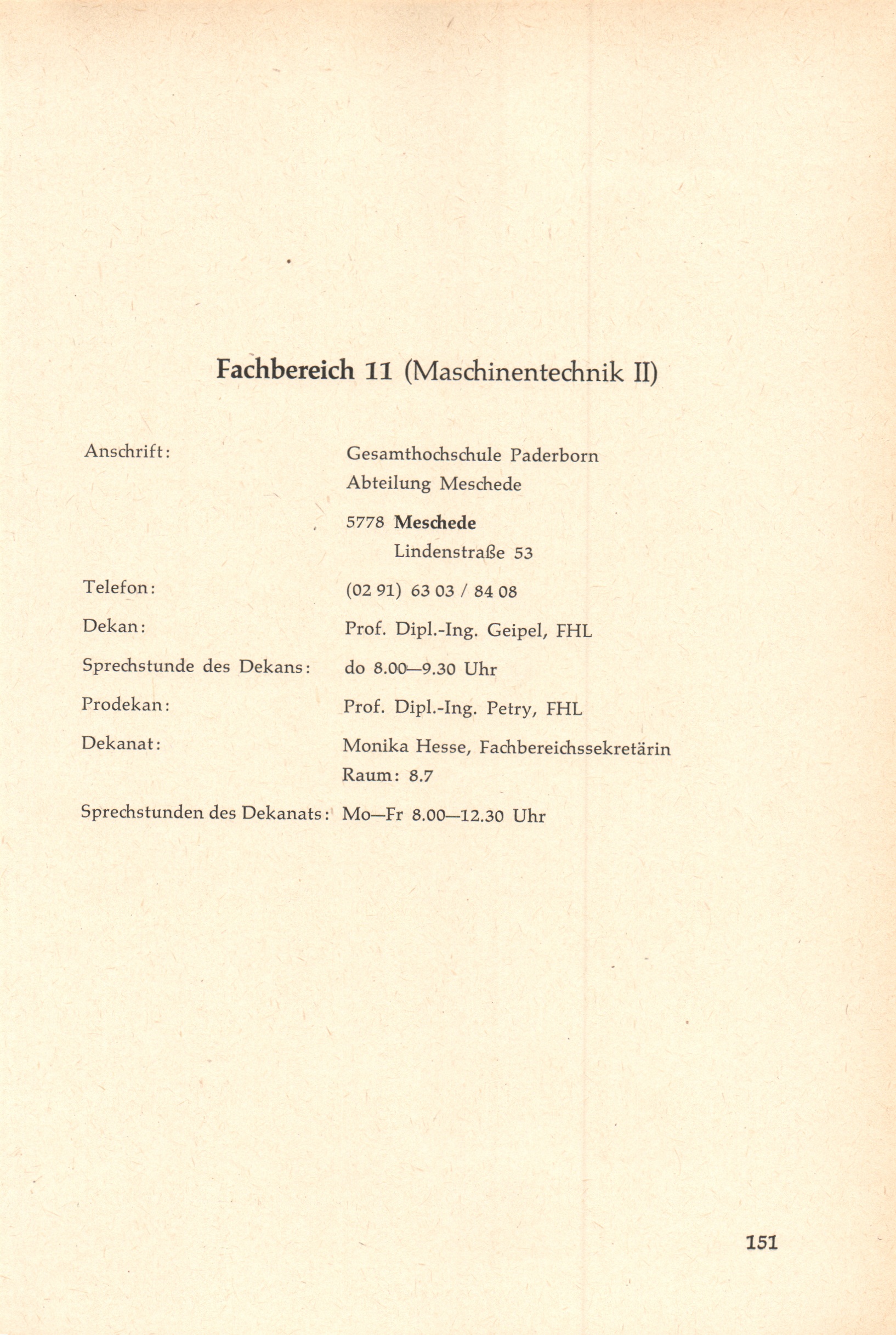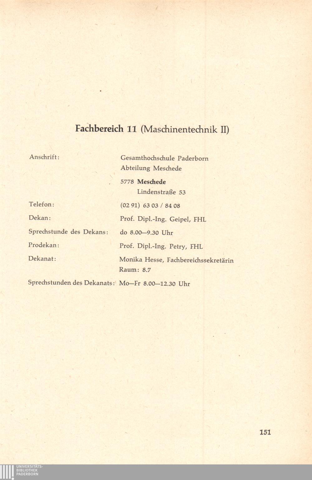 Personal- und Vorlesungsverzeichnis für die Gesamthochschule Paderborn