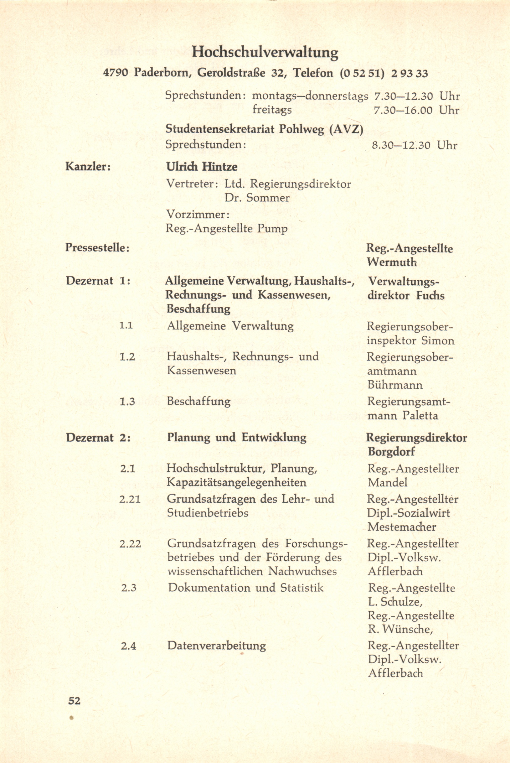 Personal- und Vorlesungsverzeichnis für die Gesamthochschule Paderborn
