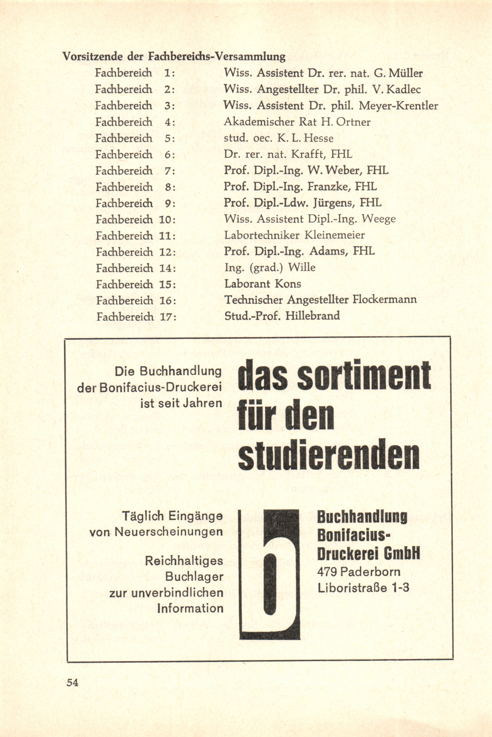 Personal- und Vorlesungsverzeichnis für die Gesamthochschule Paderborn
