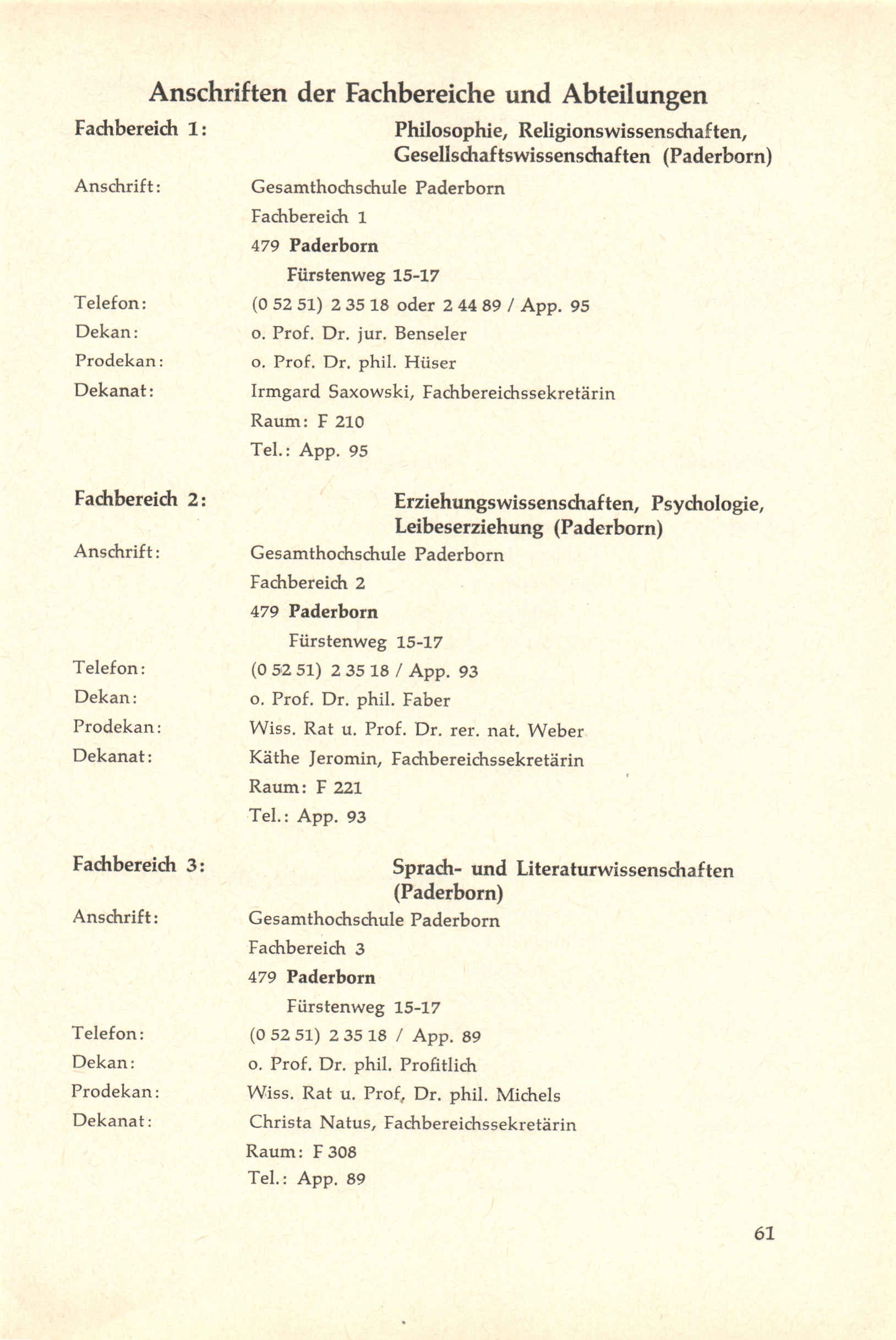 Personal- und Vorlesungsverzeichnis für die Gesamthochschule Paderborn