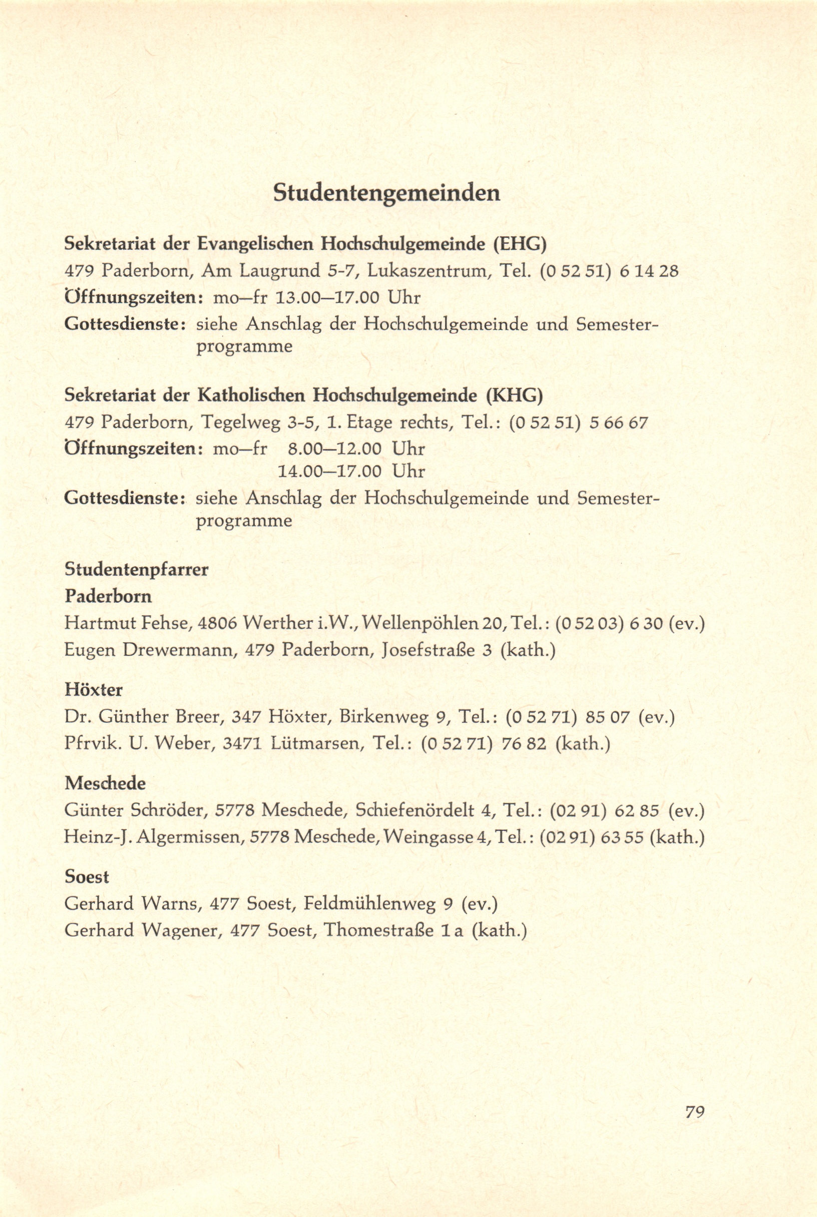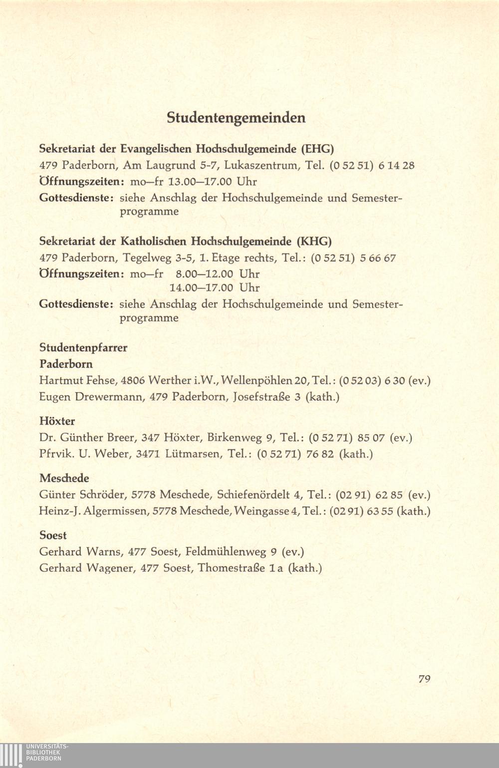 Personal- und Vorlesungsverzeichnis für die Gesamthochschule Paderborn