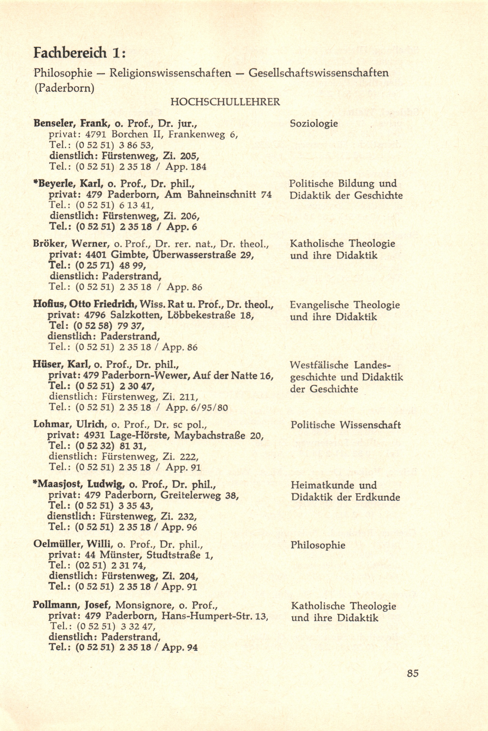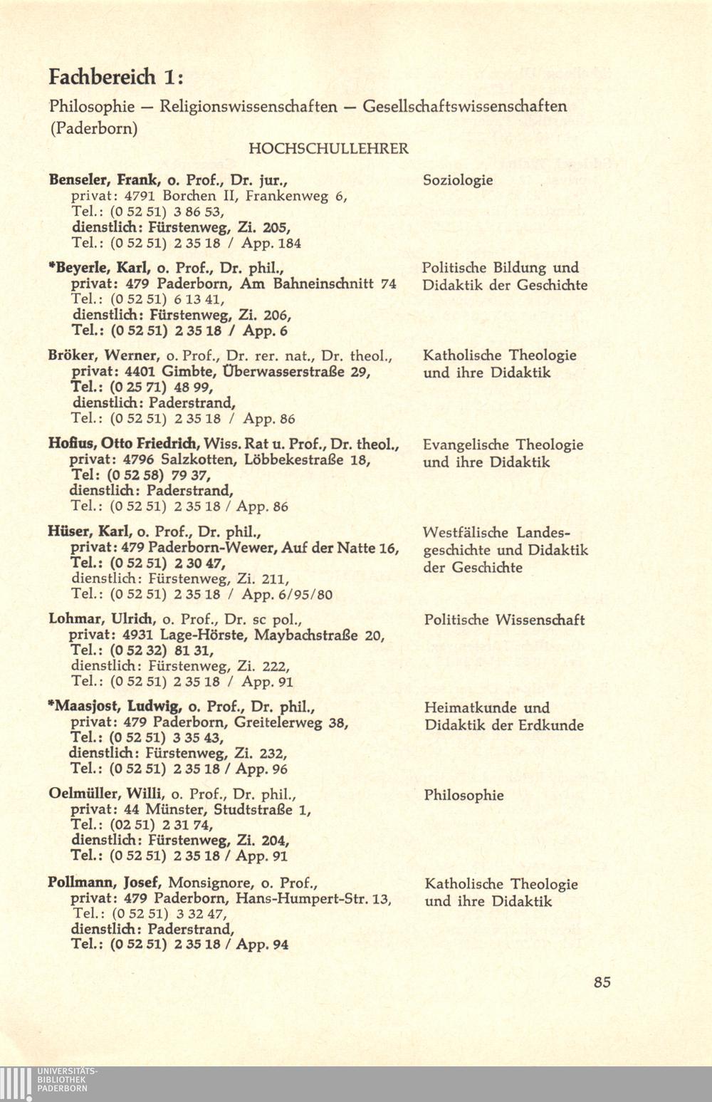 Personal- und Vorlesungsverzeichnis für die Gesamthochschule Paderborn