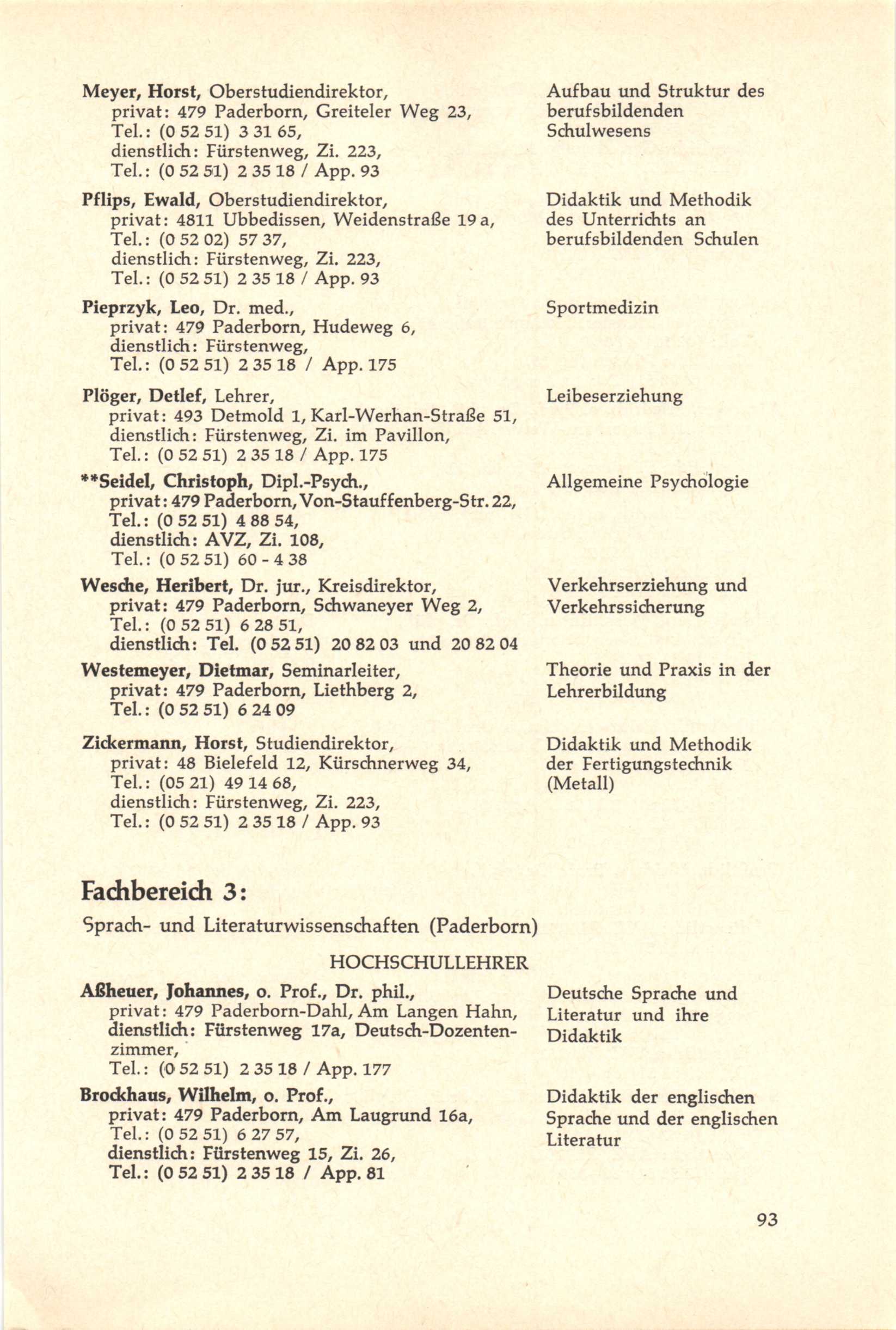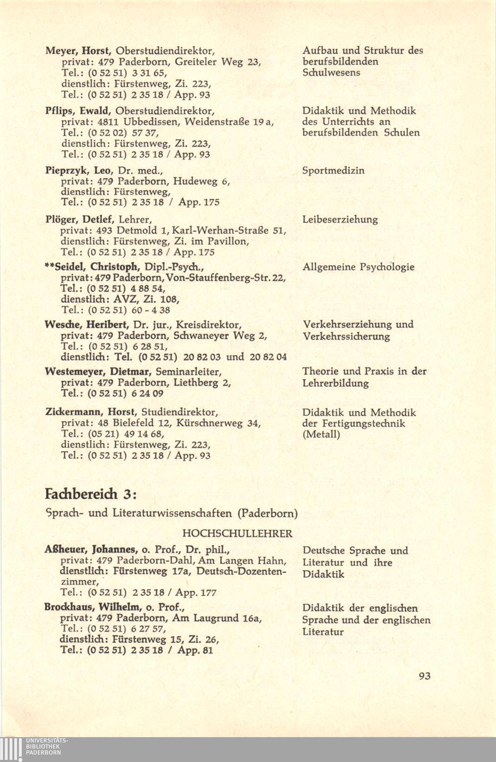Personal- und Vorlesungsverzeichnis für die Gesamthochschule Paderborn