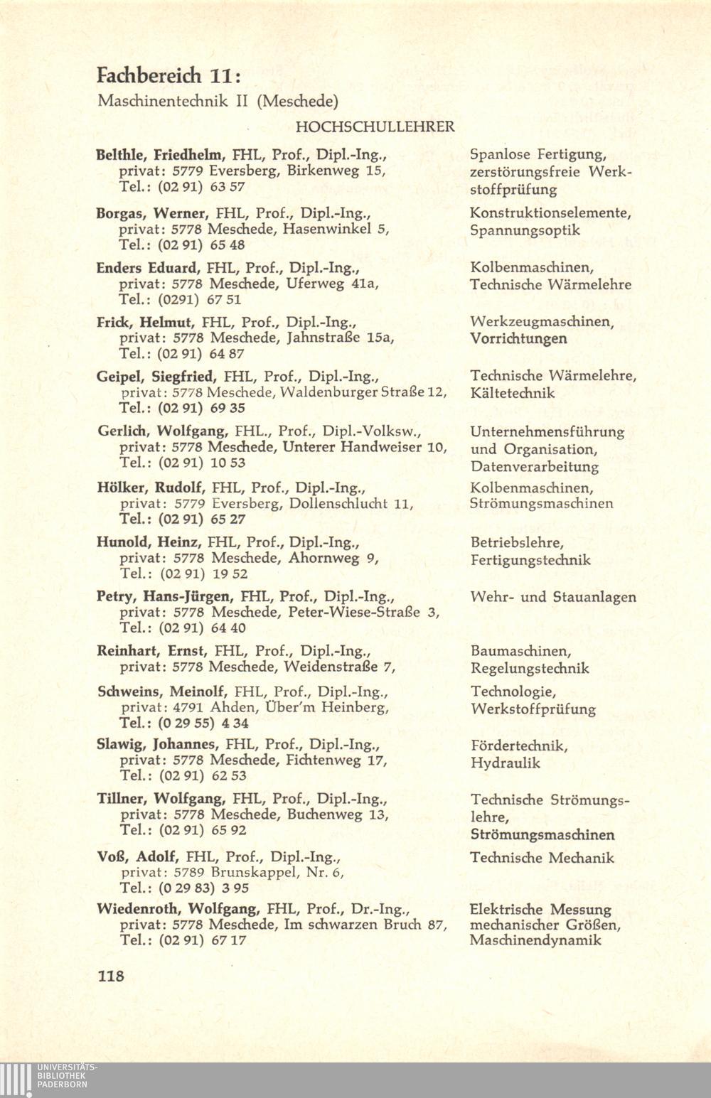 Personal- und Vorlesungsverzeichnis für die Gesamthochschule Paderborn