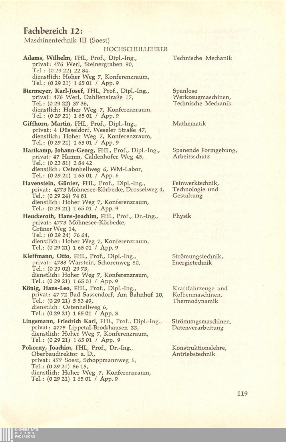 Personal- und Vorlesungsverzeichnis für die Gesamthochschule Paderborn